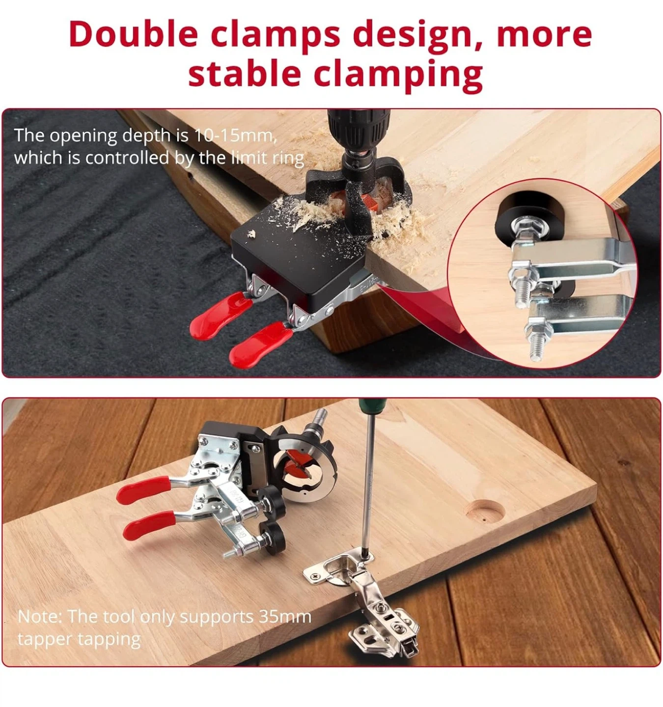 It also come with XUNTOP 35mm Concealed Hinge Drilling Jig Hole Set Durable Aluminum Alloy Concealed Door Hinge Jig Double Stable Fixed Clamps Drilling Guide DIY Tool for Wood Furniture Door Cabinets