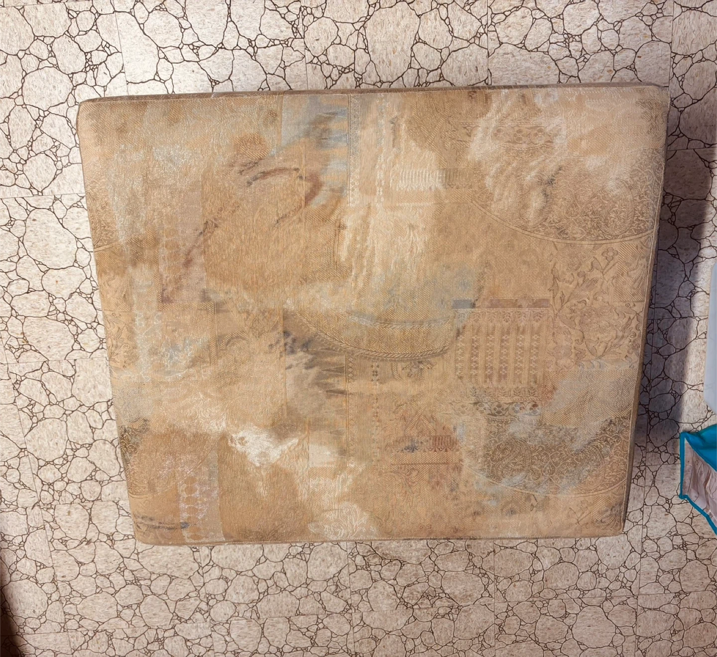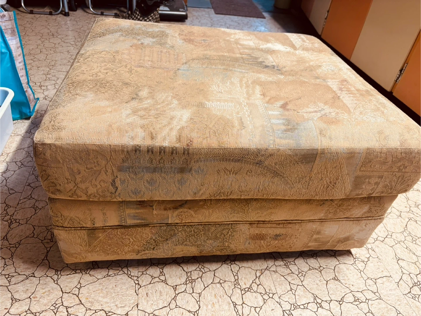 Vintage 90s Ottoman – Classic Beige Patterned Footstool 🥕