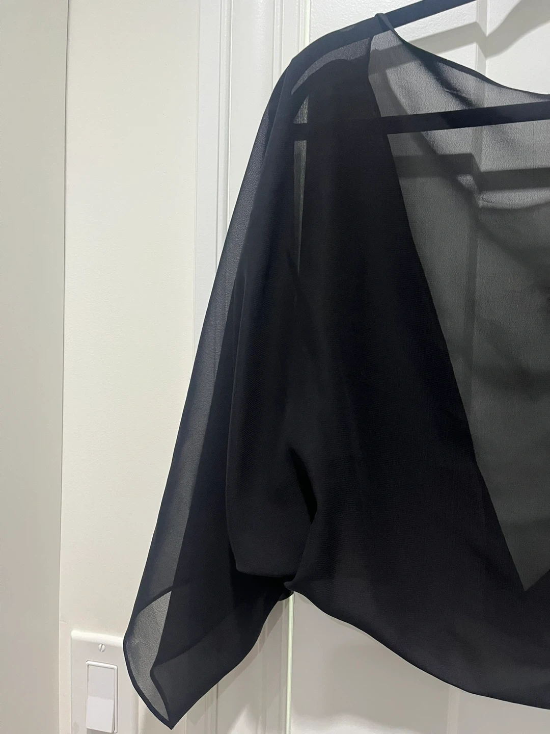 Buy & SellSheer Black Kimono Style BoleroSheer Black Kimono Style Bolero$8Sheer black bolero with kimono-style sleeves. It's made of lightweight, flowy material. This piece adds an elegant layer over tops or dresses.ConditionLike newSizeMedium WHERE TO MEET9583 132 St 7-elevenView MapSELLERverifiedMamiSurrey BC650 reviews0 chats·1 favorites·7 viewsSEND CHAT TO SELLERHi Mami! I’m interested in your listing.Hi Mami! I’m interested in your listing.Get the Karrot app to chatSign In to chat