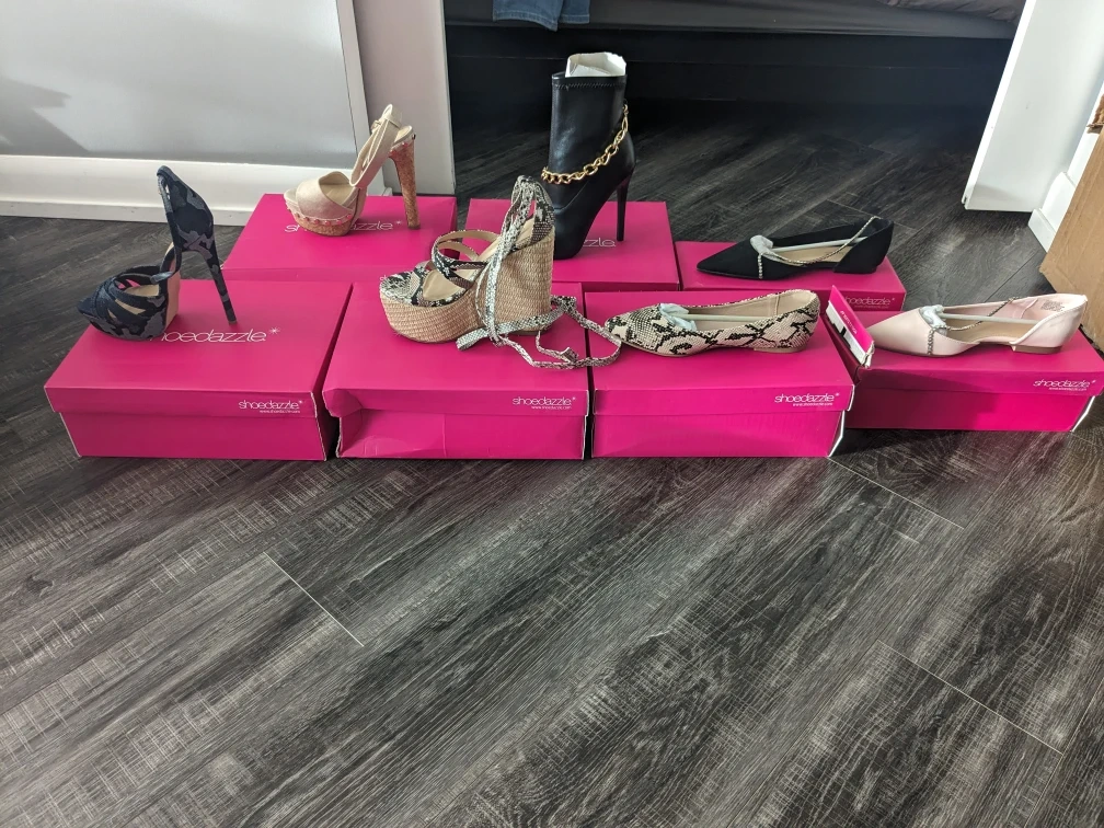 Selling a collection of ShoeDazzle shoes in various styles and sizes. All come in their original boxes! Perfect for adding some variety to your wardrobe. Check out the photos to see the different styles available 4 heels 3 flats asking 30$ for all
