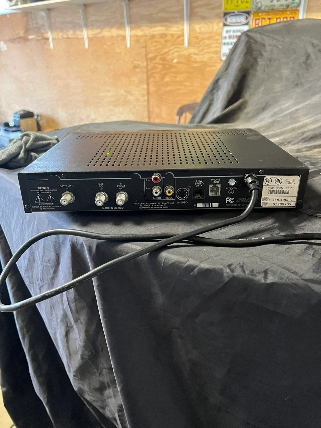 RCA DIRECTV D10 satellite receiver. Black box with various ports and buttons. Includes power cord. Used condition.