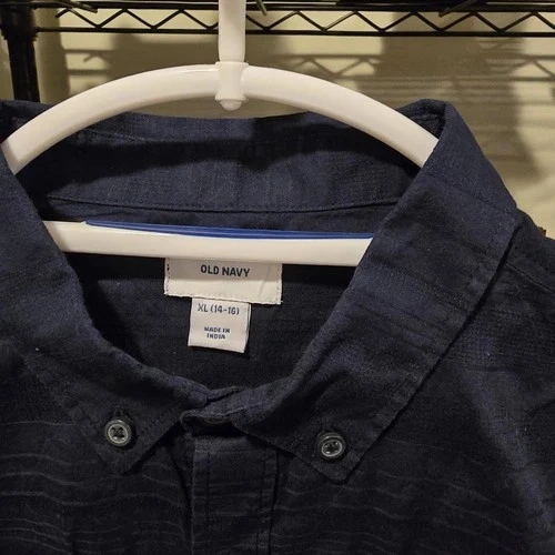 Boy's Old Navy Blue Short Sleeve Button Up Shirt XL
