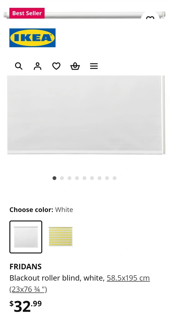 I'm selling a brand new IKEA FRIDANS blackout roller blind in white! It's still in its original packaging. RETAIL $32.99