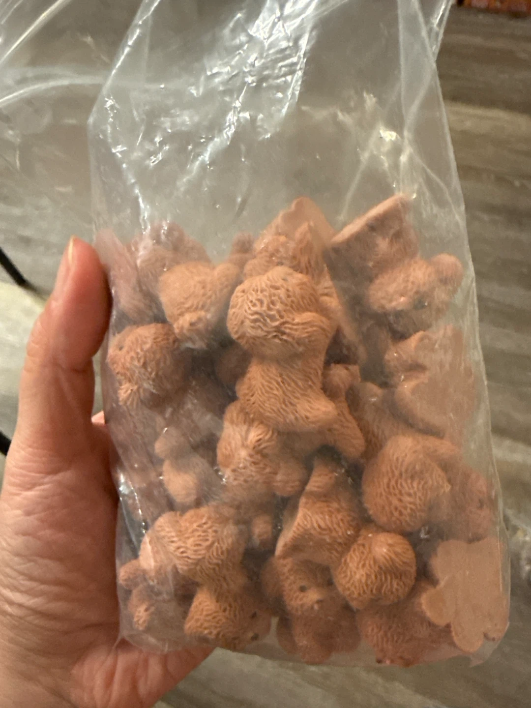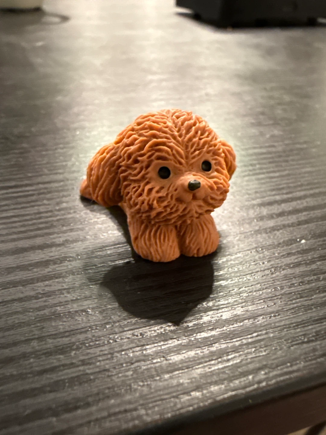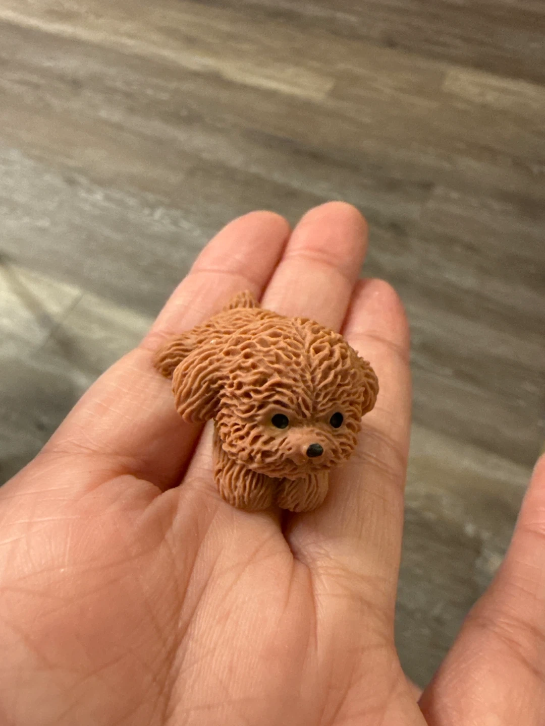 These are adorable little poodle dog charms. They come in a bag and are a light brown colour. Great for collecting or as cute desk accessories!