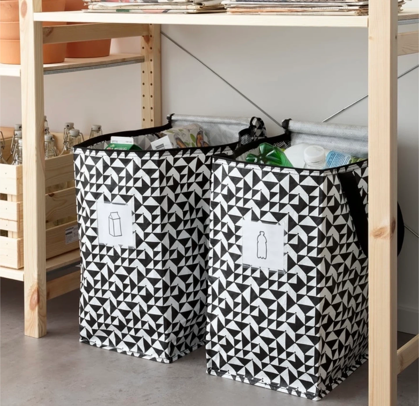 6 IKEA FINTORP Bag with Handle - Black & White Geometric Pattern