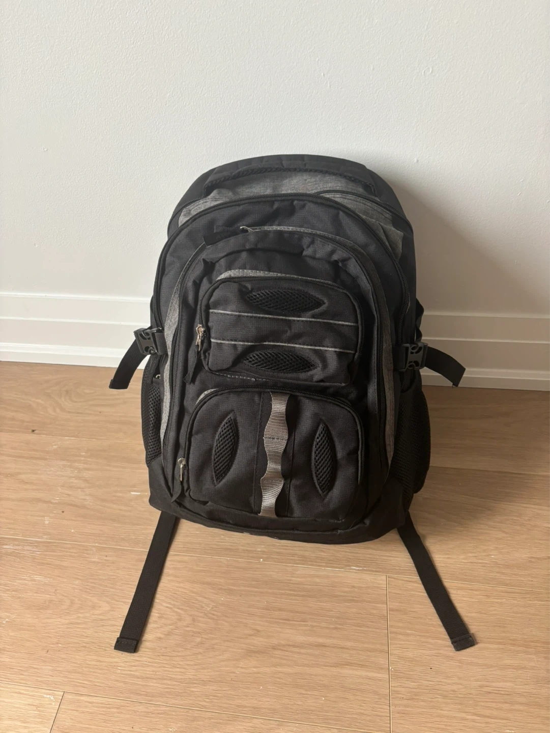 Buy & SellBlack and Grey Backpack in good conditionBlack and Grey Backpack in good condition$10This is a black and grey backpack. It has multiple zippered compartments and padded shoulder straps. It's made of durable fabric.WHERE TO MEETL5G 1E1View MapSELLERverifiedJibranMississauga Valleys35022 reviews0 chats·0 favorites·16 viewsSEND CHAT TO SELLERHi Jibran! I’m interested in your listing.Hi Jibran! I’m interested in your listing.Get the Karrot app to chatSign In to chat