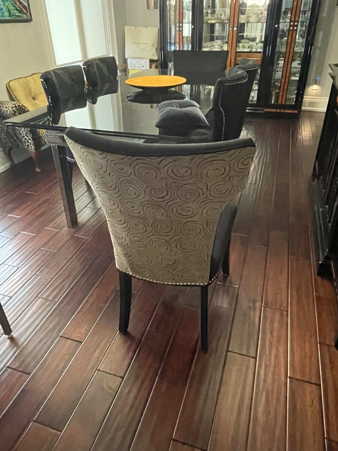 Black Upholstered Dining Chair with Decorative Nailhead Trim