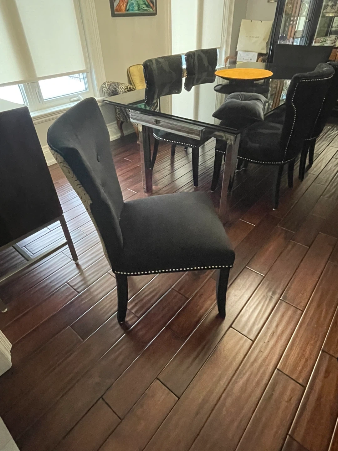 Black Upholstered Dining Chair with Decorative Nailhead Trim
