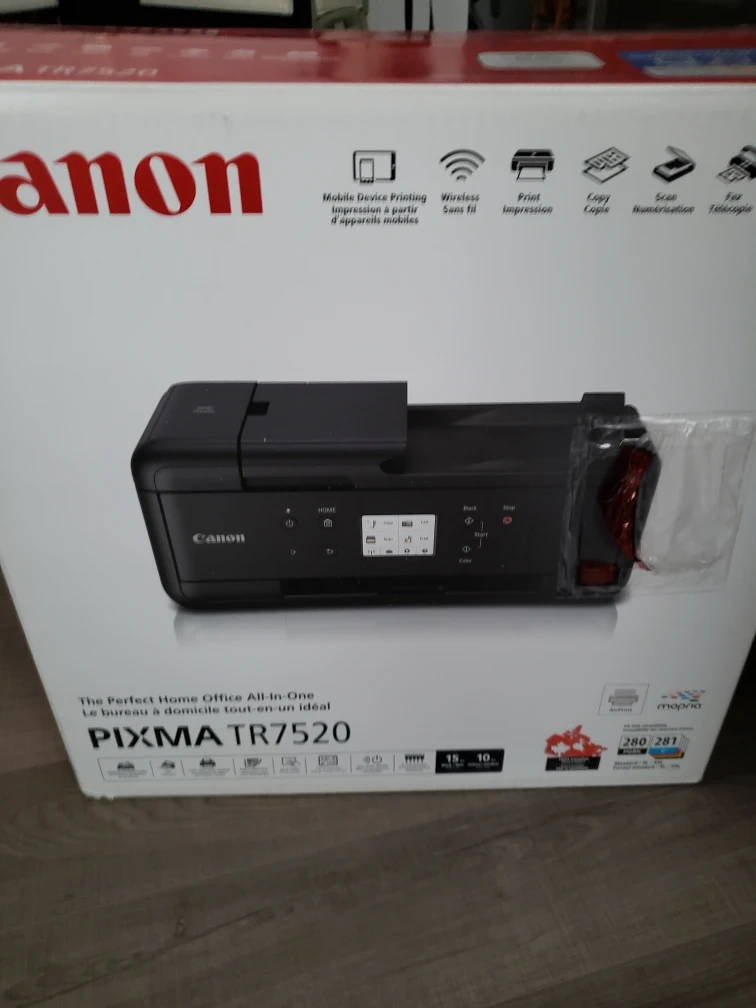 Black and white and colour printer, scanner, copier, and fax machine. Wireless and mobile printing capability. Comes with original packaging. Contains a cartridge.