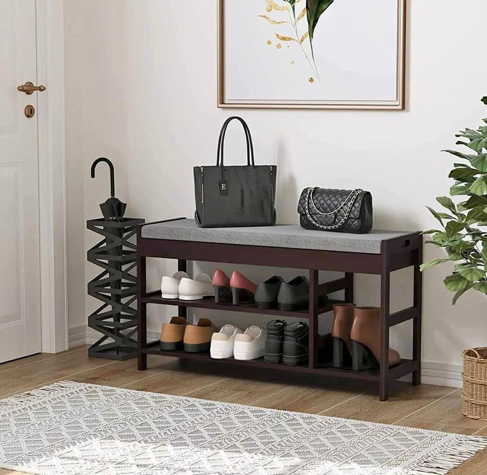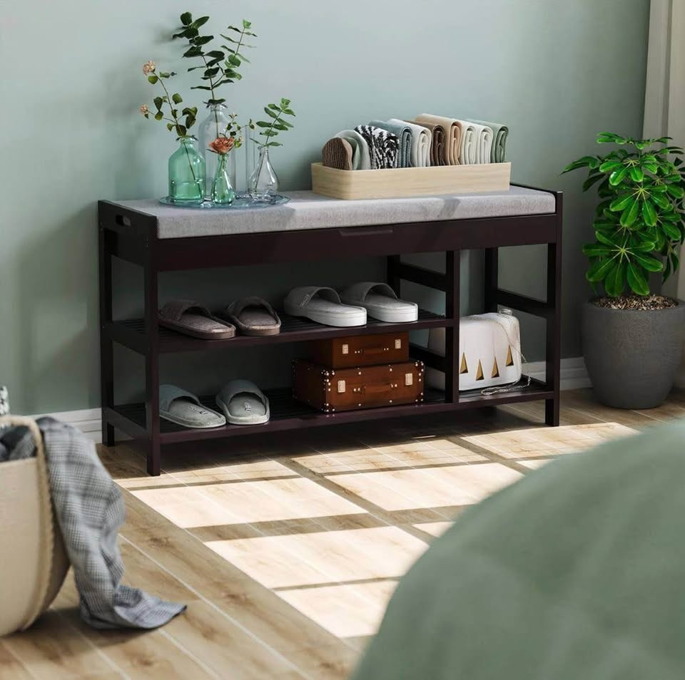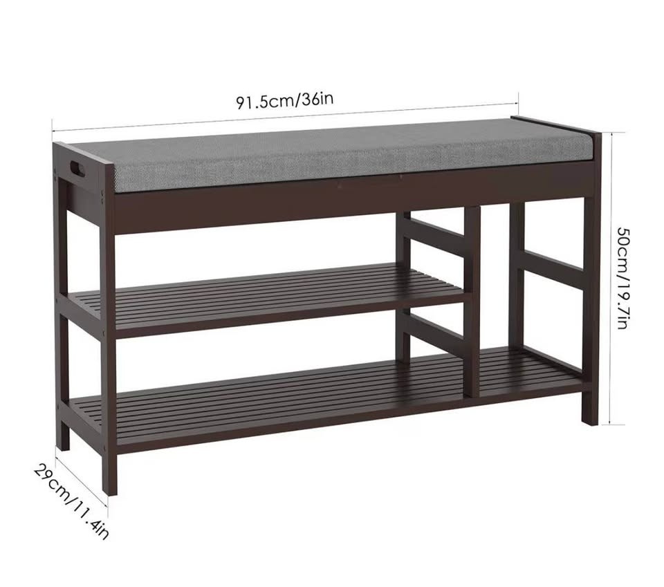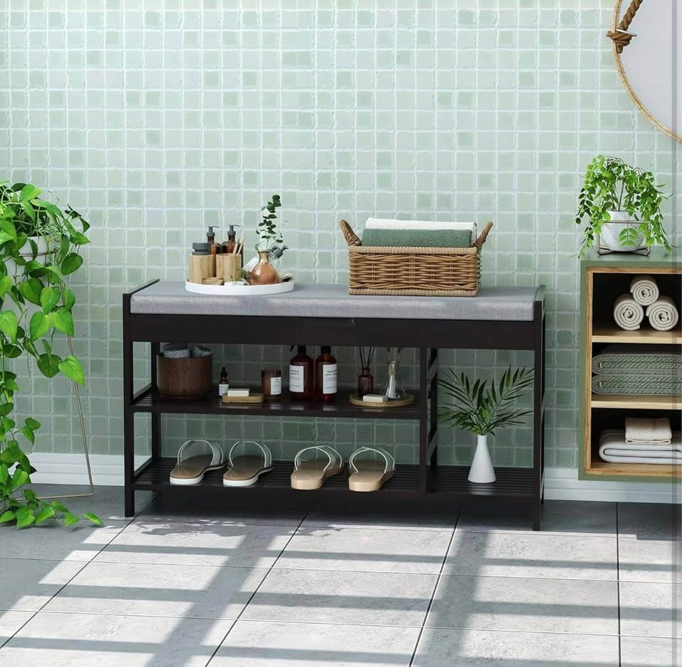 Organize your entryway, foyer, mudroom, bathroom, or hallway with this sturdy, stylish bench. Soft padded seat + 2 tiers of roomy shoe storage β perfect for daily use.