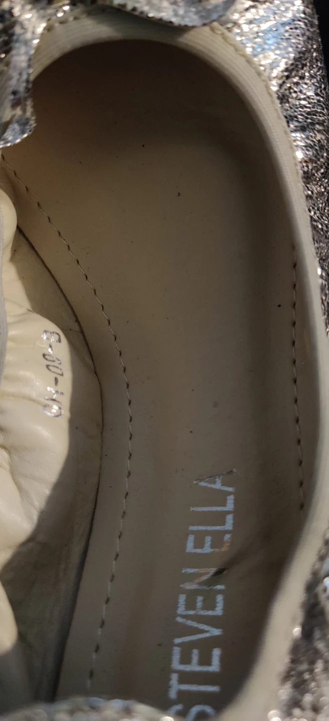 These Steven Ella ballet flats are a shimmering silver colour. They're a size 8.5. Perfect for adding a touch of sparkle to any outfit! If you don't agree with the asking price please dont message me about the item.