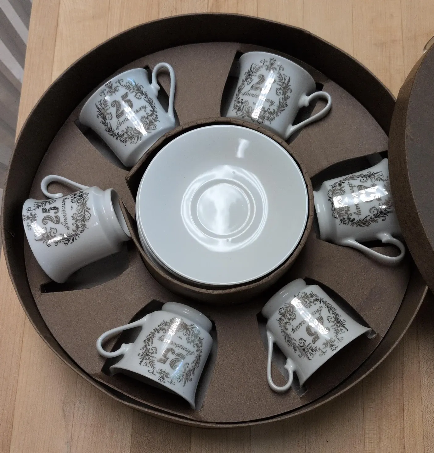 Set of 6 Espresso Cups and Saucers - 25th Anniversary