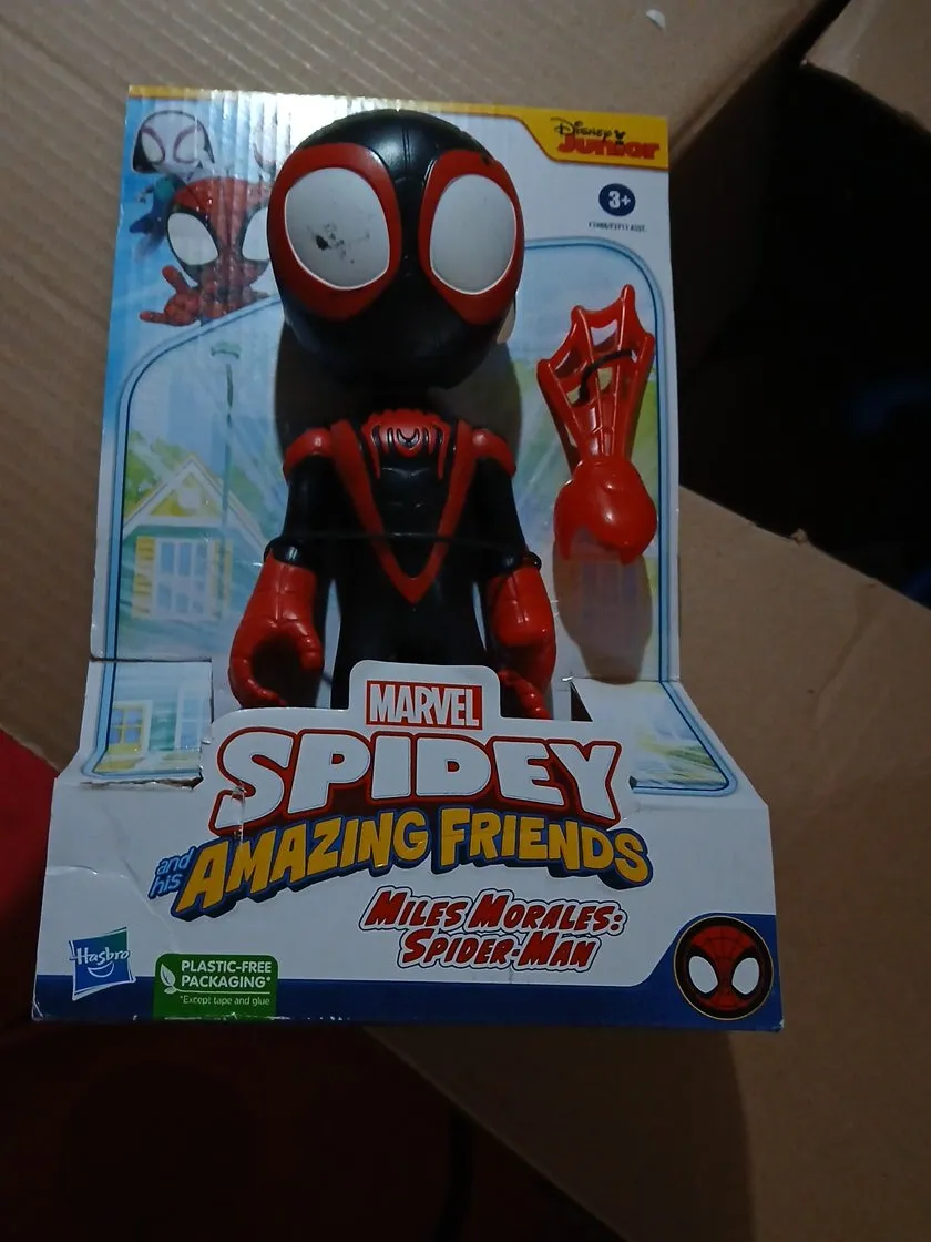 This Miles Morales action figure is from Marvel's Spidey and His Amazing Friends series. It's designed for ages 3 and up. Comes in plastic-free packaging.