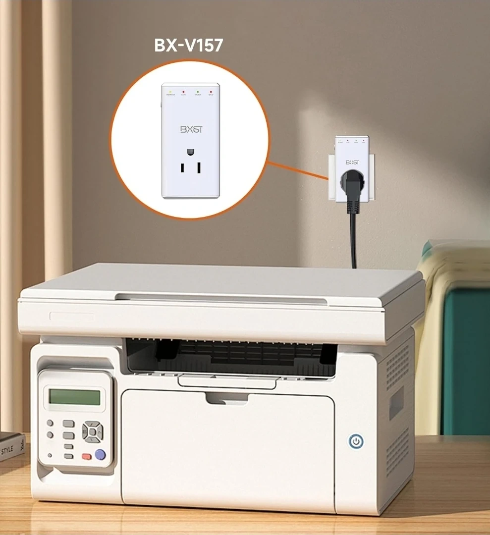 This BXST voltage protector is designed to safeguard household appliances. It features adjustable delay times of 15S/30S/3M and protects against high and low voltage. The plug rotates 350° for convenient use.