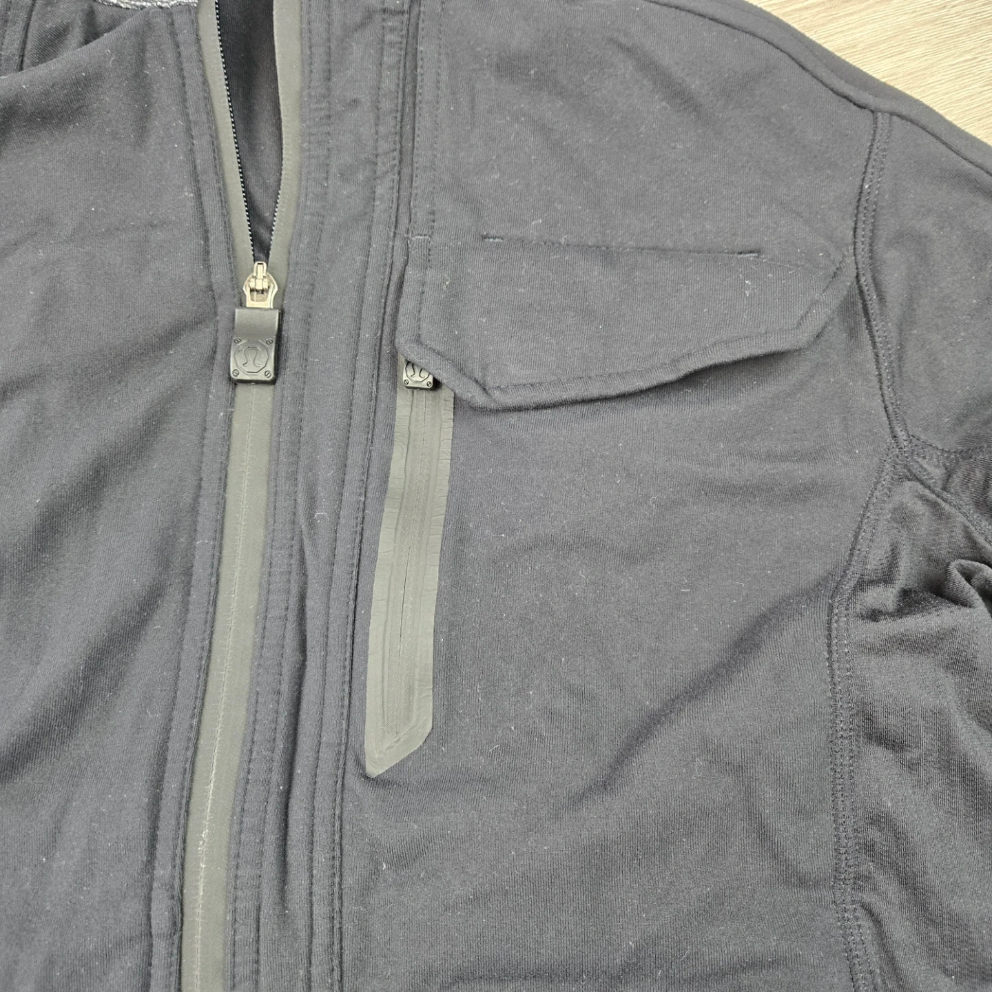 Standard good used condition. No damage or large marks. This material is very comfy and seems to attract alot of lint. Ive used a fabric shaver to remove lint but some may be present
