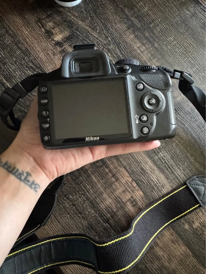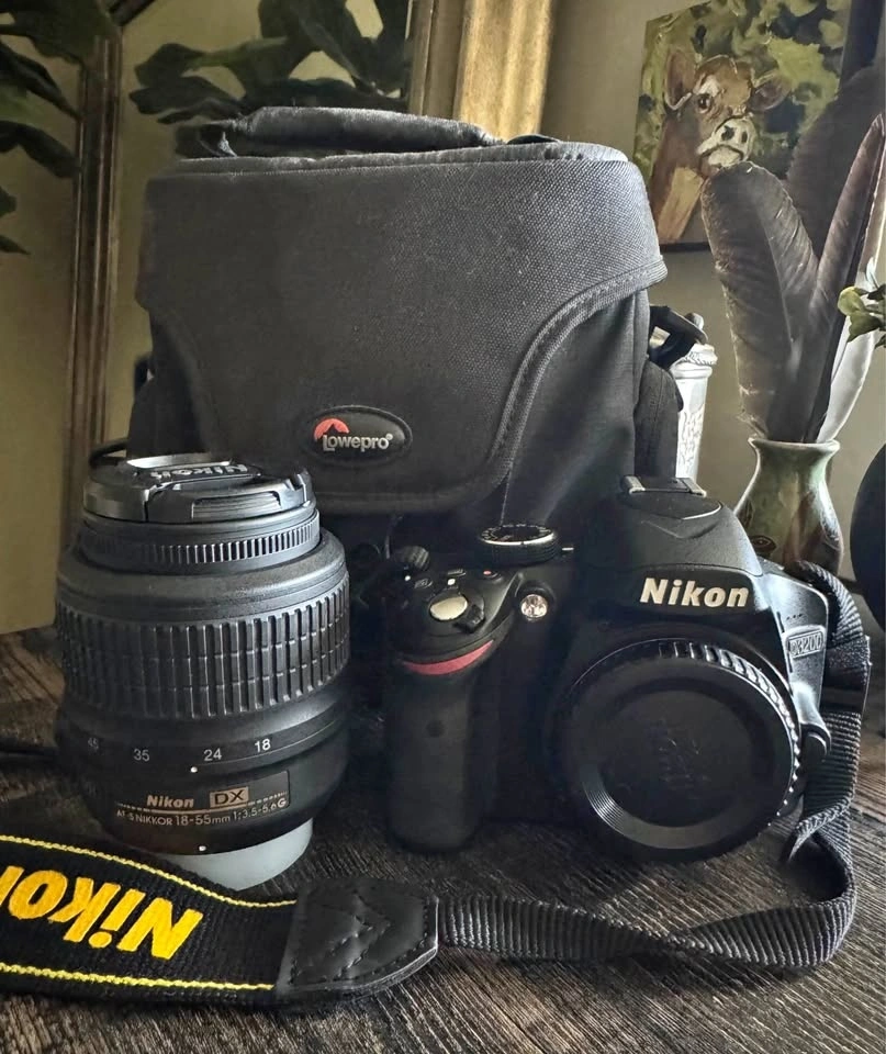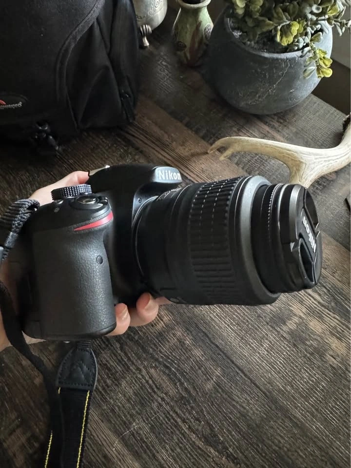 Nikon D3200 DSLR camera, with a 18-55mm lens, as well as a camera bag for travel, neck strap, and battery and charging cable. Very gently used, I can meet you in White Rock or Downtown Vancouver