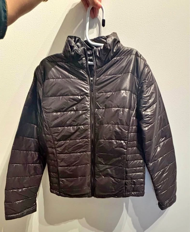 Selling a simple and stylish black puffer jacket which is lightweight and perfect for layering!