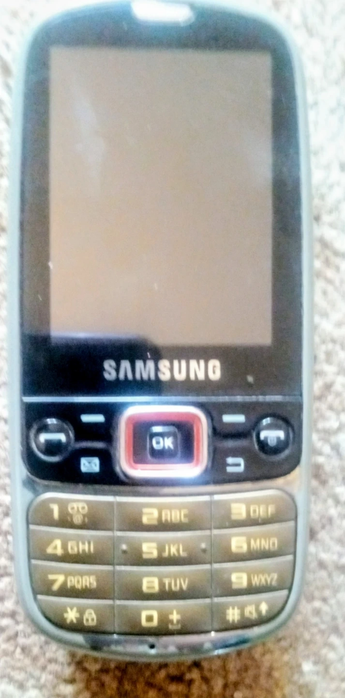 A basic Samsung mobile phone. It has a physical keypad for easy texting. This phone is straightforward to use for calls and messages.