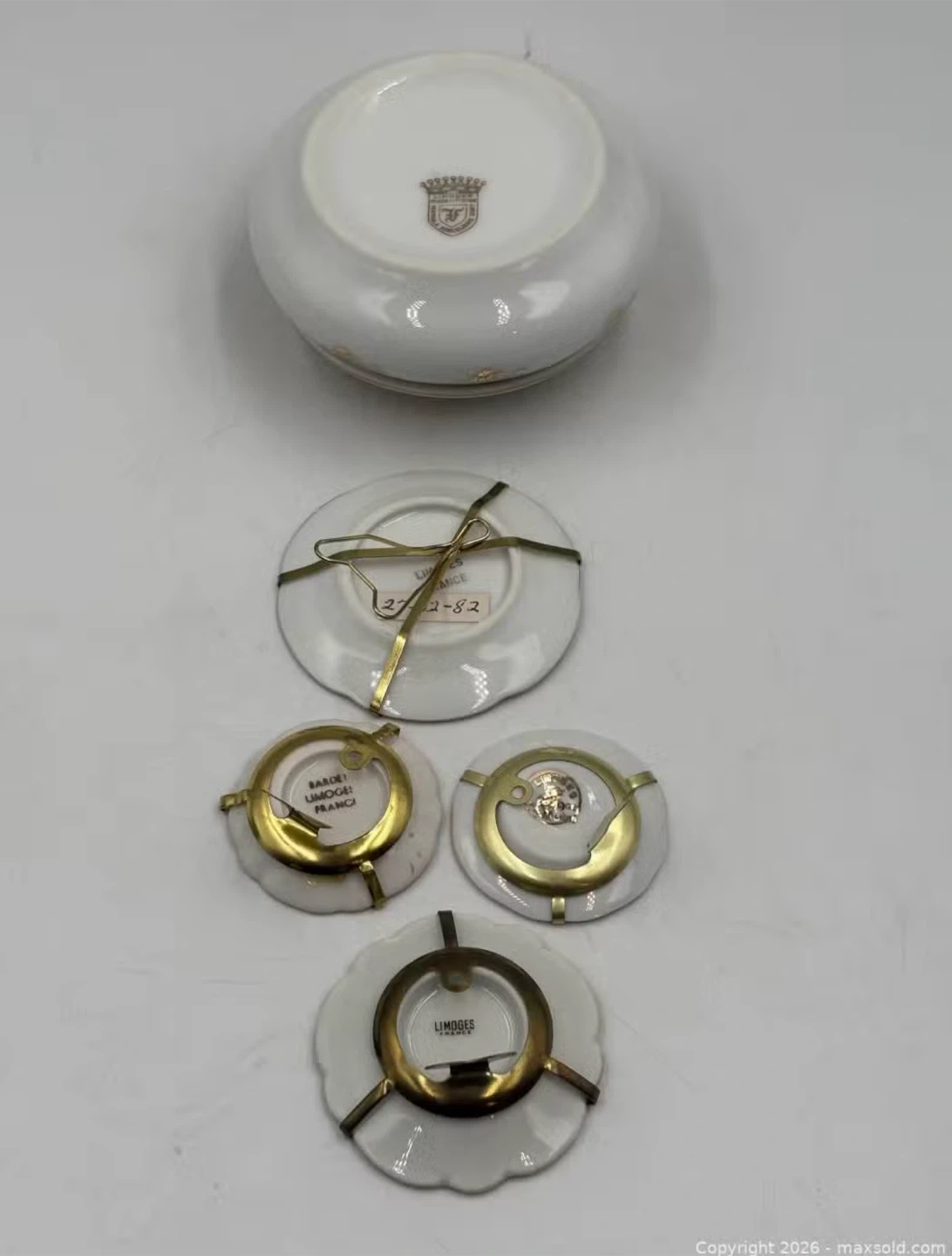 Selling a set of Fragonard Limoges France trinket dishes and a matching box. They feature intricate designs and a gold trim, adding a touch of elegance to any space. The dishes and box are in great condition and ready to be displayed or used for storing small treasures