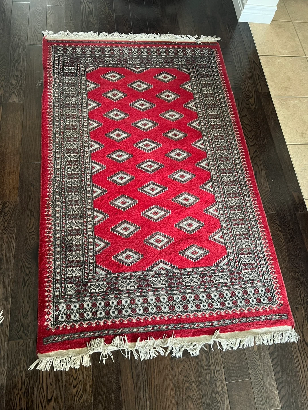 MOVING SALE- Handmade Red Pattern Area Rug with Fringe