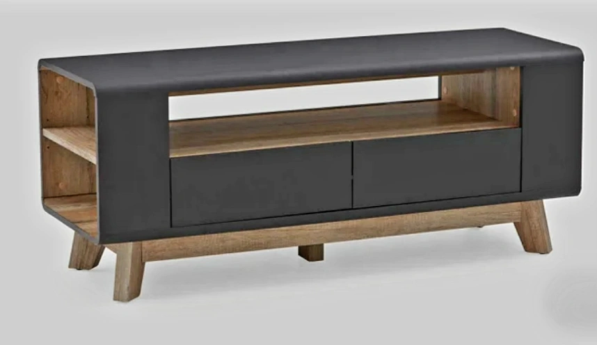 With a sleek black and white colour scheme, symmetrical shelving and light oak legs, it’s a perfect example of contemporary design. Chelsa’s wide shelf and double drawers provide ample space for storing electronic equipment and accessories, while the end compartments are ideal for showcasing books. It brightens up darker spaces and naturally helps hide wires. Perfect for a 55" TV or under.