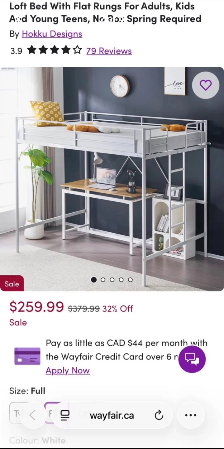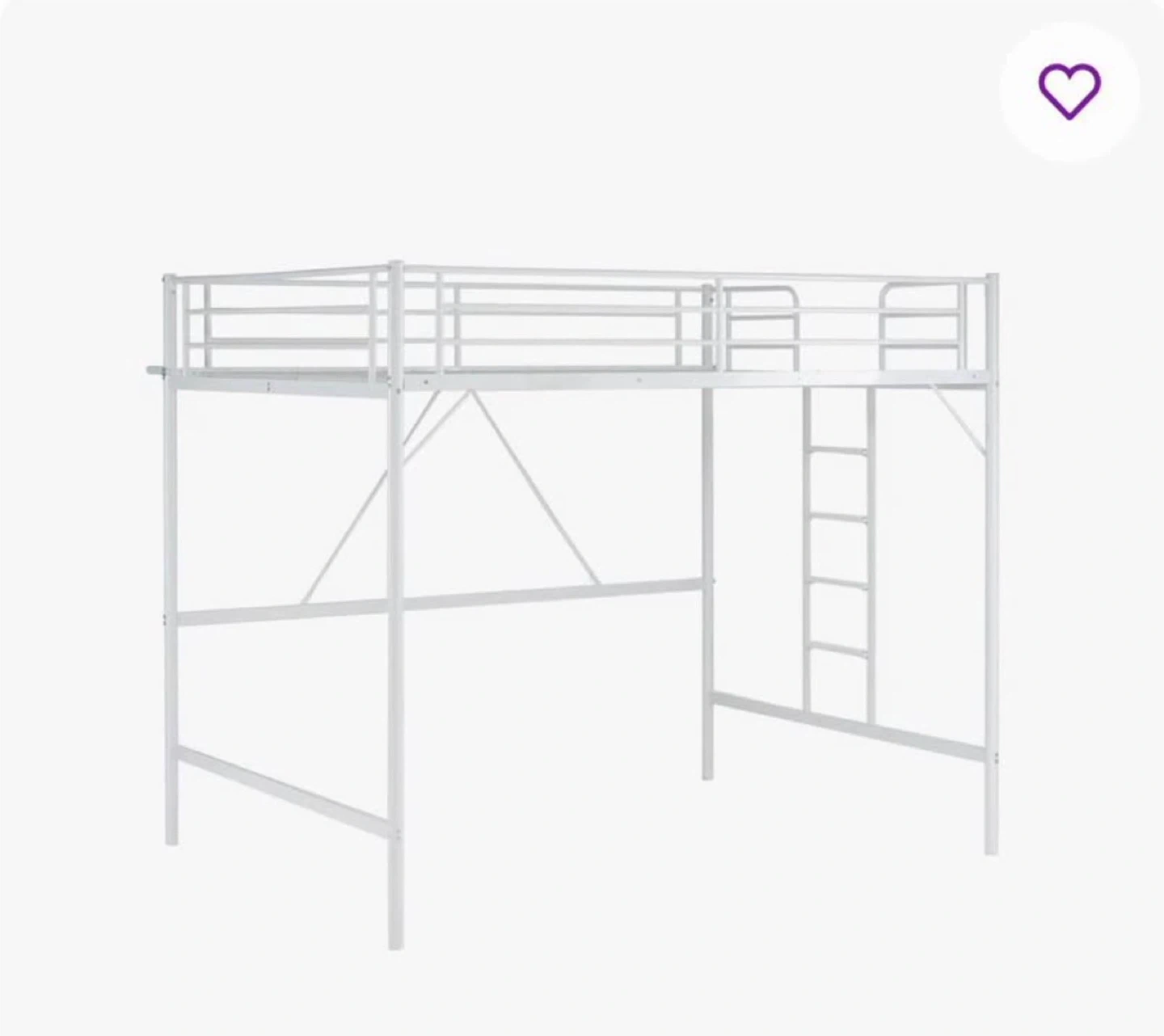 This white metal loft bed is perfect for saving space. It's designed for adults, kids, and teens and includes an interchangeable ladder. The ladder can be attached to either side for flexibility.