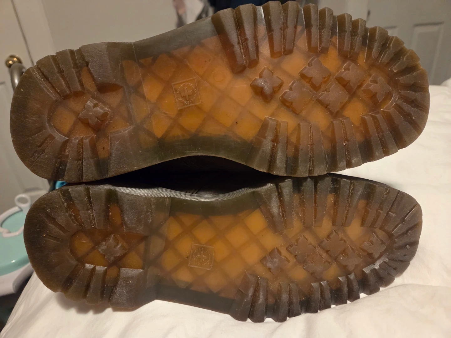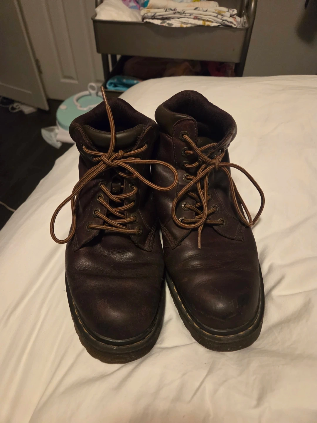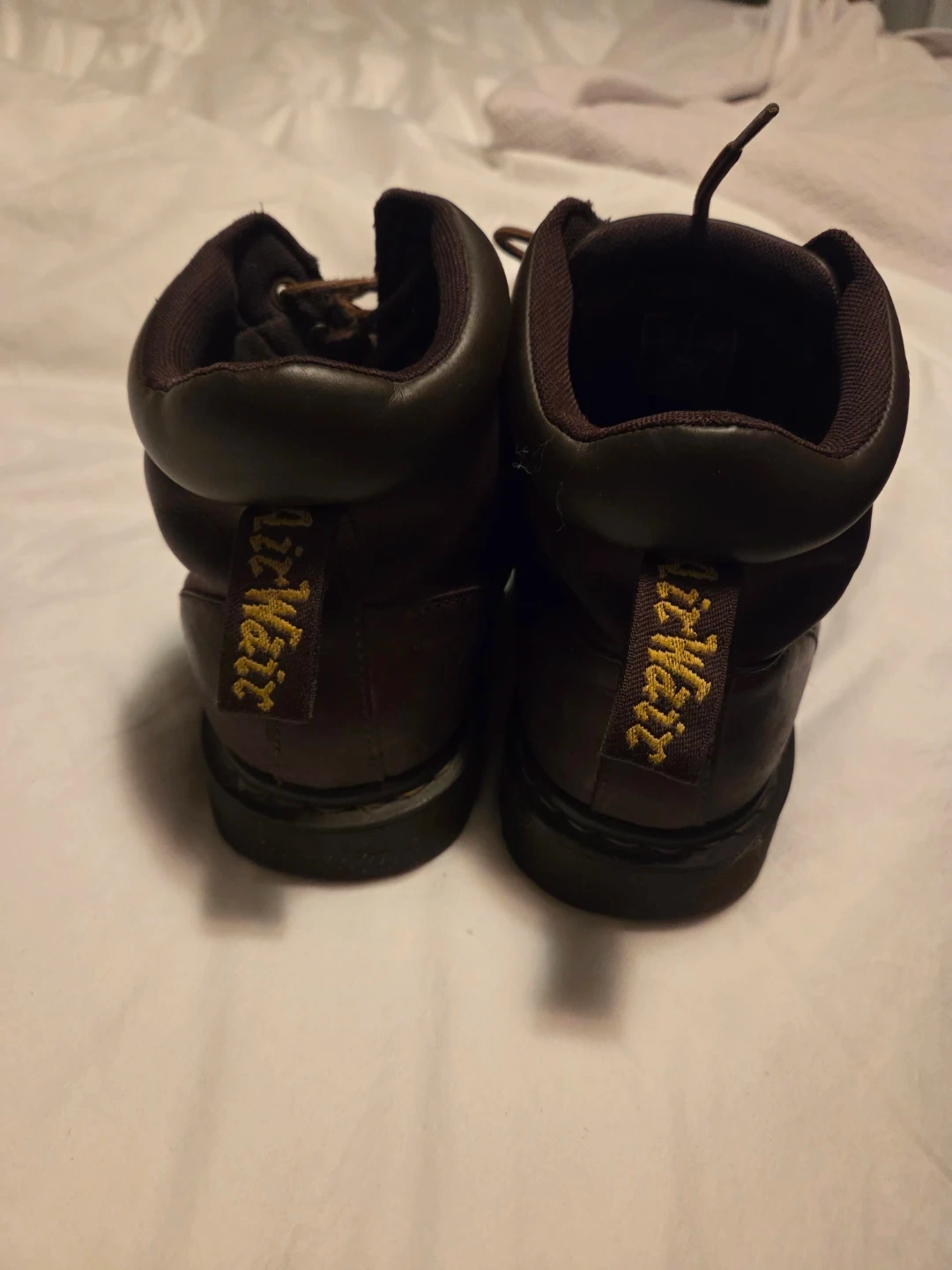 Selling a pair of Dr. Martens ankle boots in brown leather. They have the classic Dr. Martens sole and 'Air Wair' heel loop. These boots are in good condition with some signs of wear. Perfect for adding a bit of edge to your look!