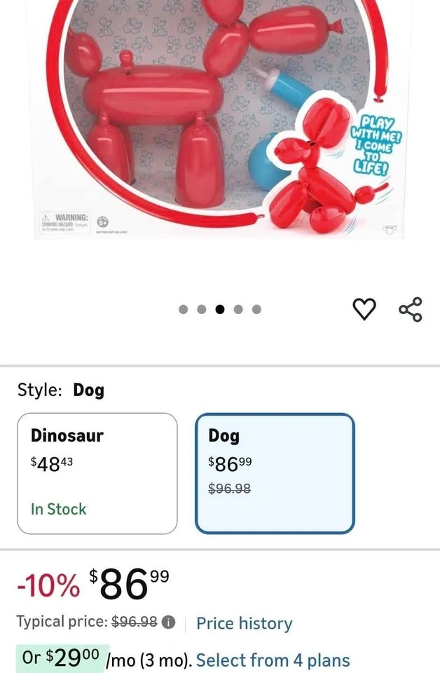 Squeakee The Balloon Dog in unopened box. New and never opened. Cash Only - Gilberts, IL 60136 Porch pickup.