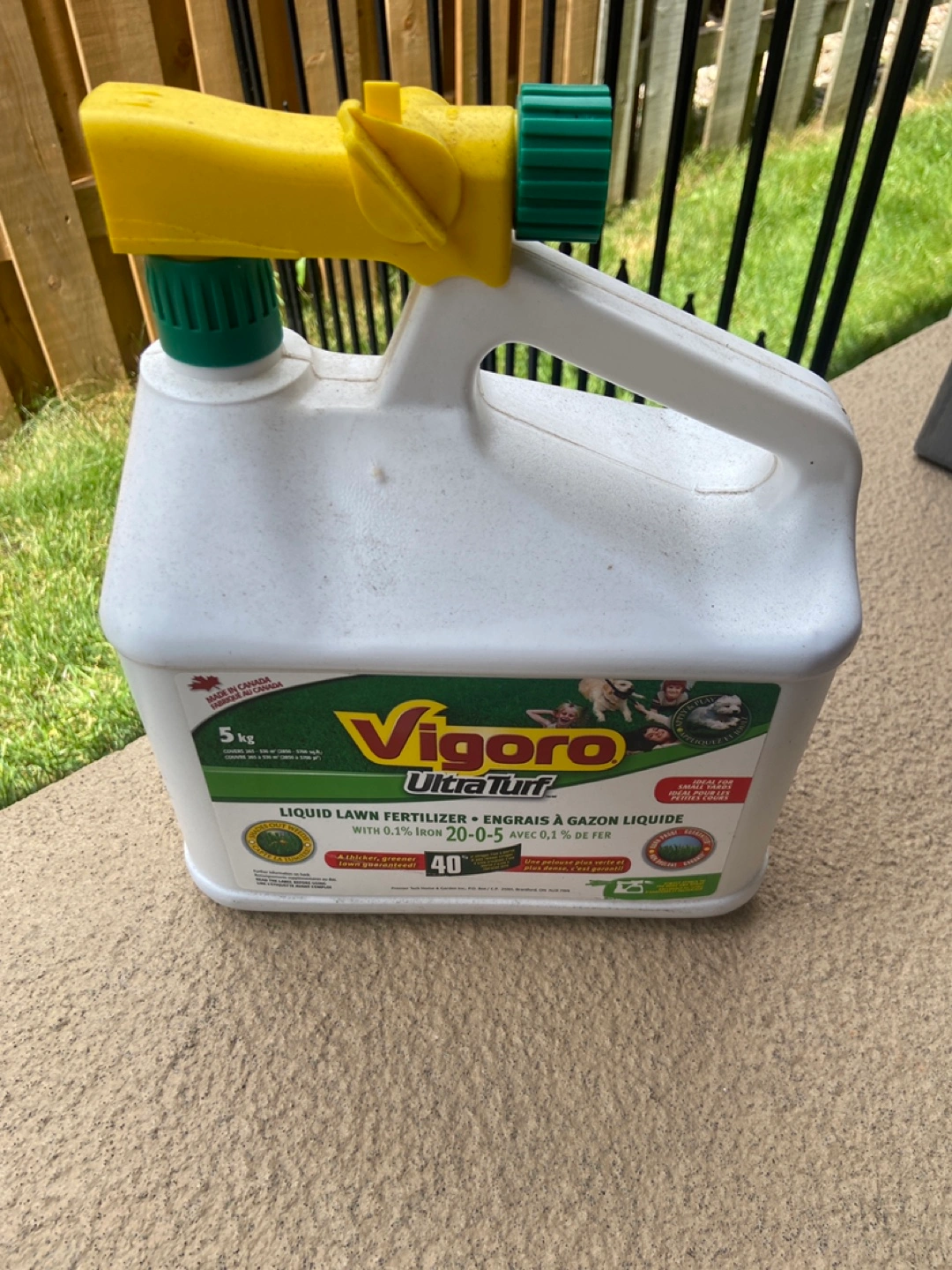 Selling a 5 KG jug of Vigoro Ultra Turf Liquid Lawn Fertilizer. It's great for a healthy, green lawn! Contains 40% nitrogen from a slow-release source, so it won't burn your grass. Perfect for one application per month in early spring.$30