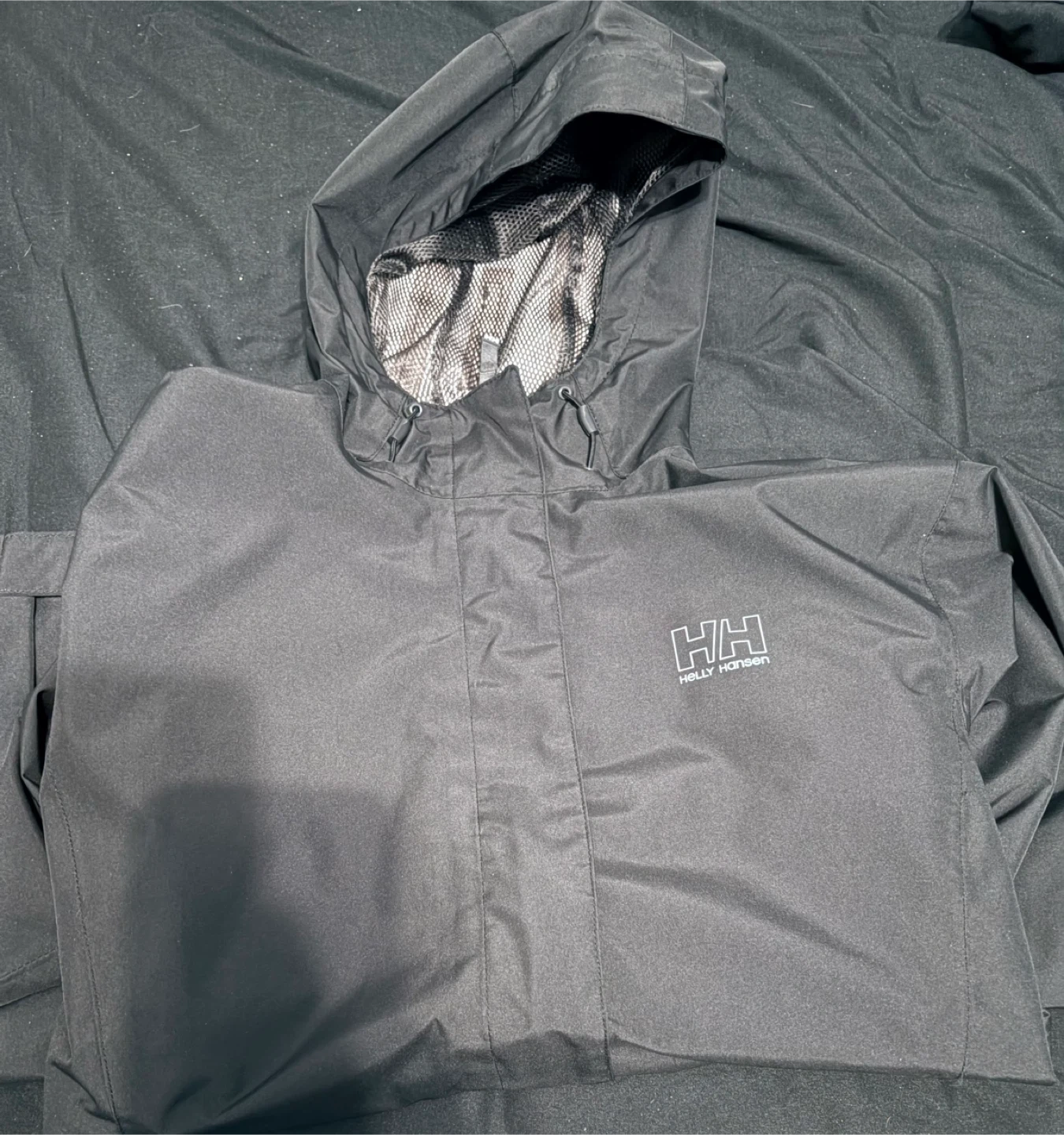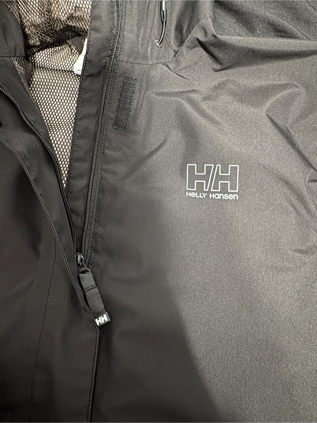 Wind proof , water proof , with hood . Zippered pockets , drawstring. Everything you would expect from Helly Hansen attire !