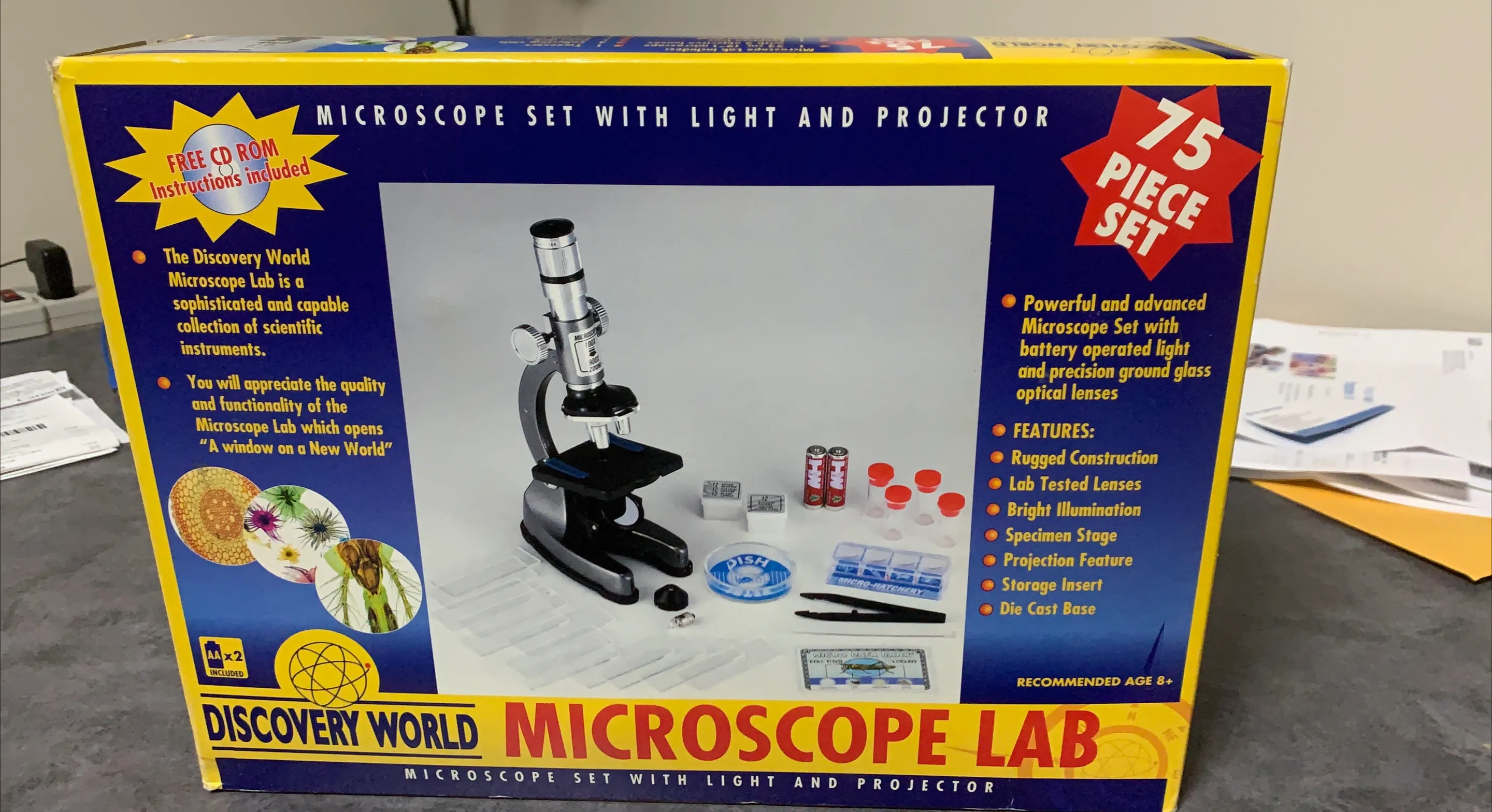Looking to spark some scientific curiosity? This Discovery World Microscope Lab set comes with everything you need to explore the microscopic world! The box includes a microscope with light and projector, along with 75 pieces for experiments and exploration. Recommended for ages 8+