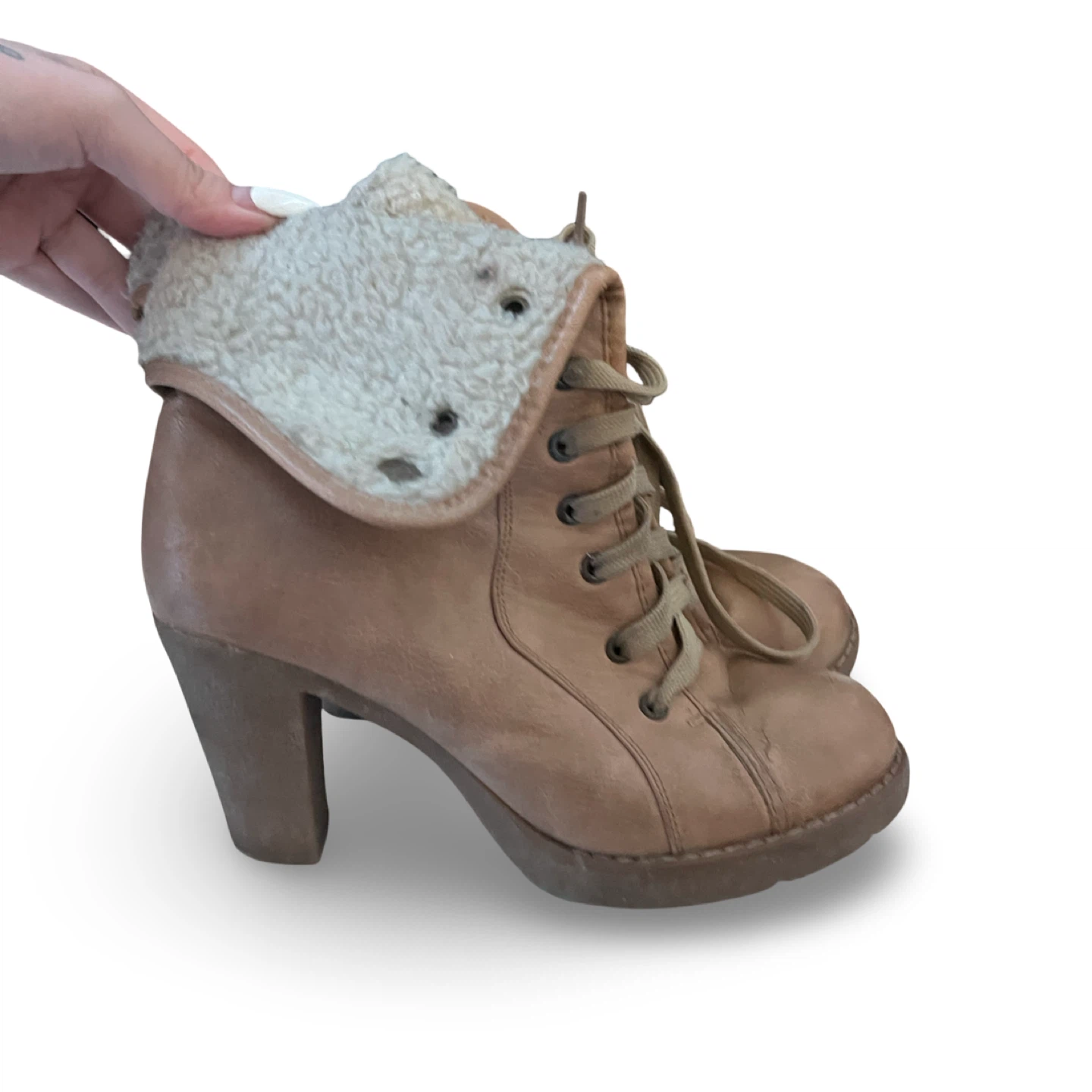 Tan Lace-Up Heeled Ankle Boots – Size 8 – Cozy Lined