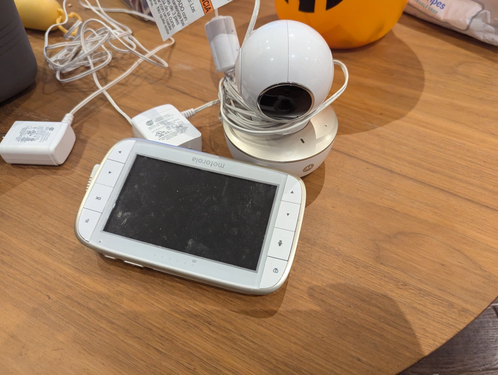 Baby monitor made by Motorola. Excellent night vision and viewing angles. Can speak through monitor to comfort baby as well . Retails for 110, asking 60 obo. Camera and monitor are in excellent condition. monitor screen just needs a little wiping.