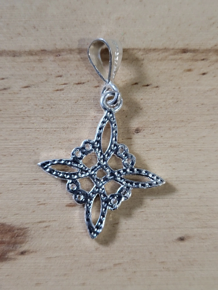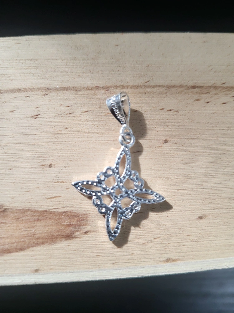 Selling a beautiful Celtic knot pendant. It's a lovely silver color and in great condition. Perfect for adding a touch of Celtic charm to any outfit!