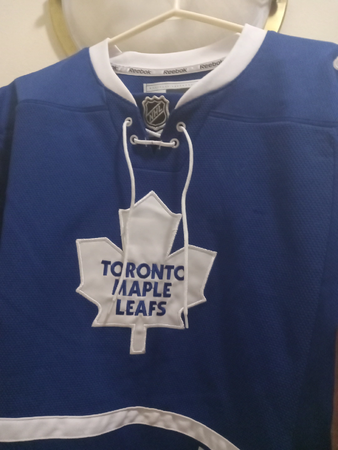 Selling a Reebok Toronto Maple Leafs jersey with Matthews' name and number 34 on the back. The jersey is blue and white and in size S/M.