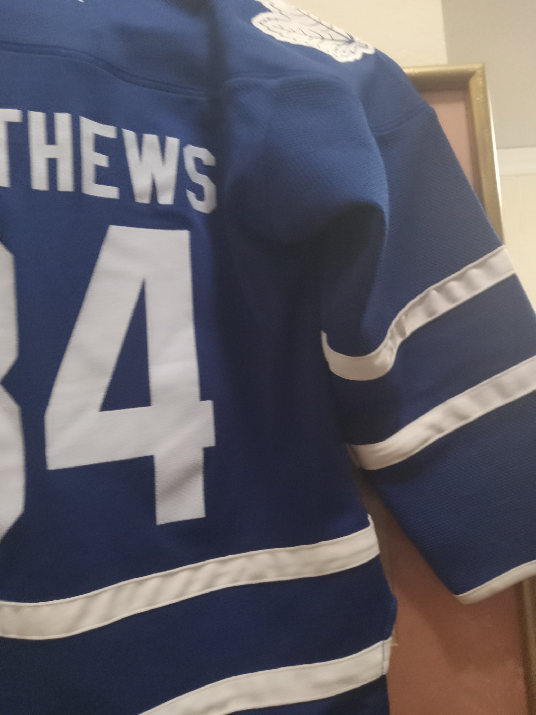 Selling a Reebok Toronto Maple Leafs jersey with Matthews' name and number 34 on the back. The jersey is blue and white and in size S/M.