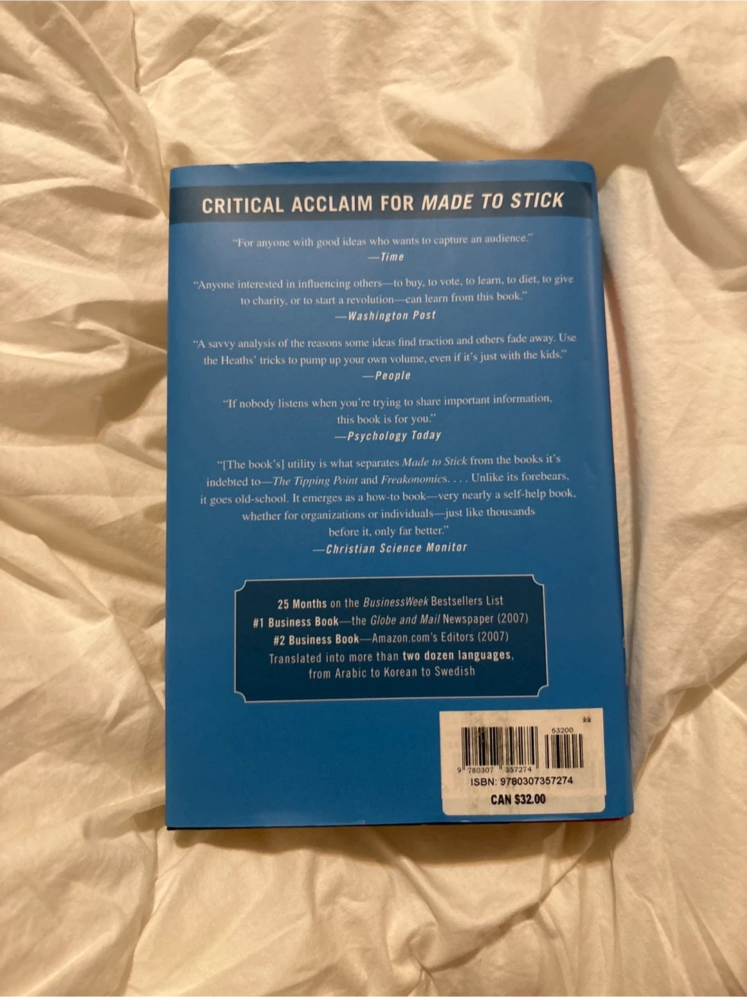 A #1 New York Times Bestseller by Chip Heath and Dan Heath. This book explores how to make changes happen, even when it's difficult. It was awarded #1 Business Book by The Globe and Mail Newspaper in 2007.