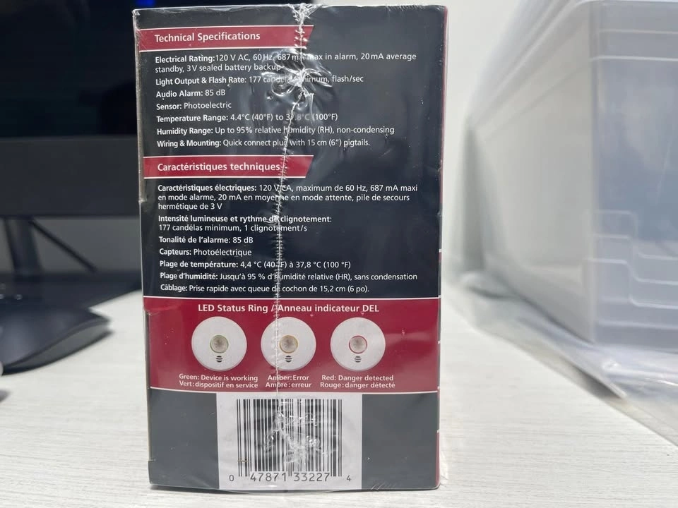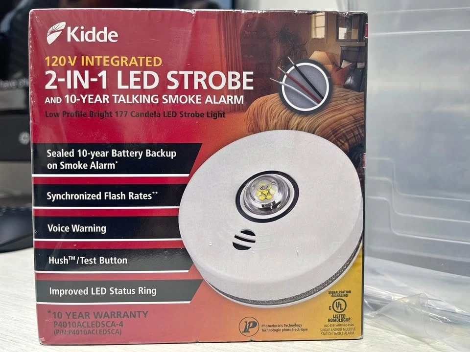 Brand new in box. Model: P4010ACLEDSCA. Retail price $179.67. Selling for $130. Pickup at Islington and Rexdale, Etobicoke. Cash only. The Kidde P4010ACLEDSCA is an integrated 120 V AC wire-in smoke alarm with 10-year sealed battery backup and LED strobe light that provides temporal patterns, visual and voice warnings. It is equipped with a 177 candela strobe light (powered by Cree® LEDs), designed to notify the deaf and hard of hearing. The unit measures only 5.8 cm (2.3") in height when mounted.
