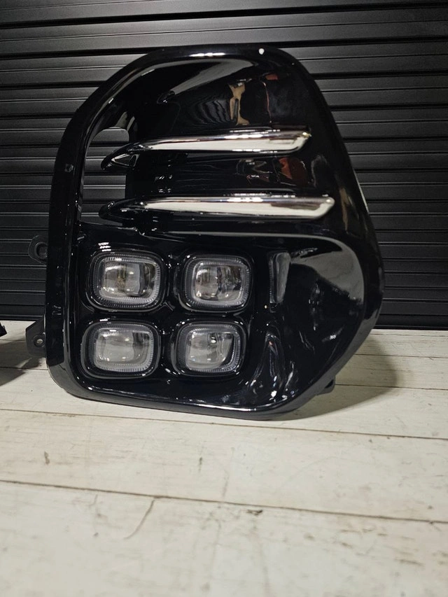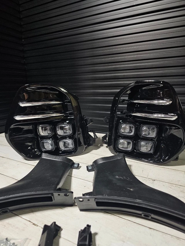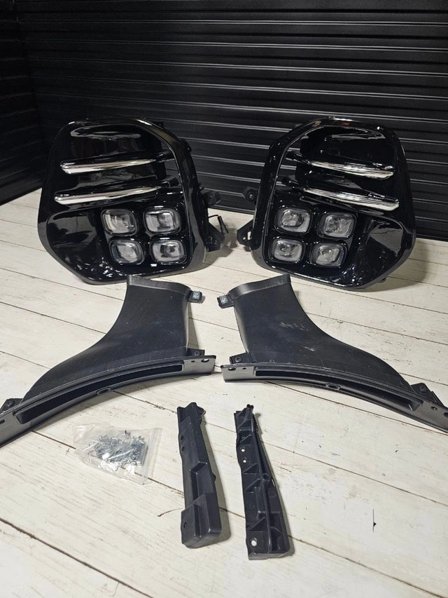 New fog lights assembly for 2016-2018 Kia Sportage. Includes both front left and right lights. Features LED lighting, chrome housing, and clear lenses. DOT and SAE certified. Direct replacement fitment.