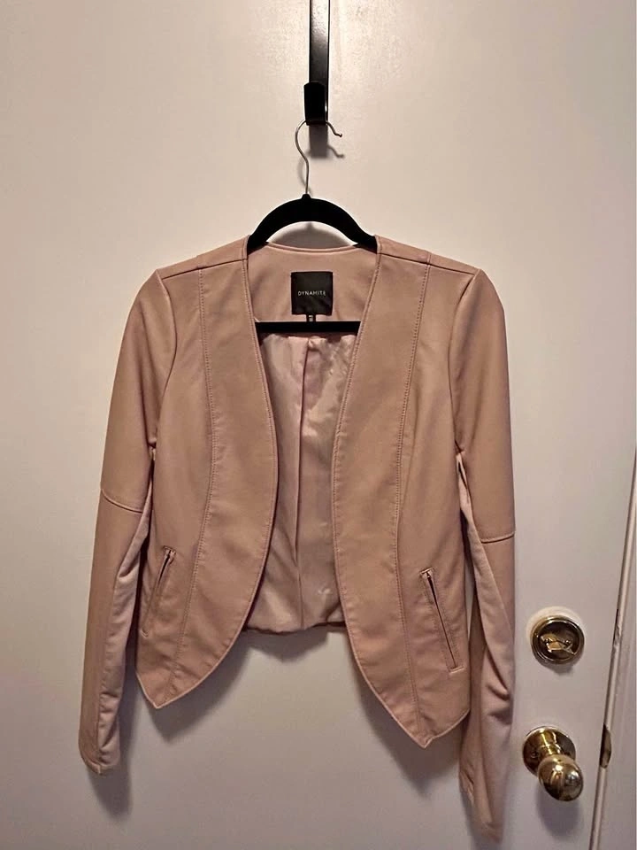Women’s pleather jacket size small from dynamite. Worn a few times. Excellent condition. Asking $20. CASH ONLY. Pick up only in Airdrie evenings and weekends. Cross posted it. No homes.