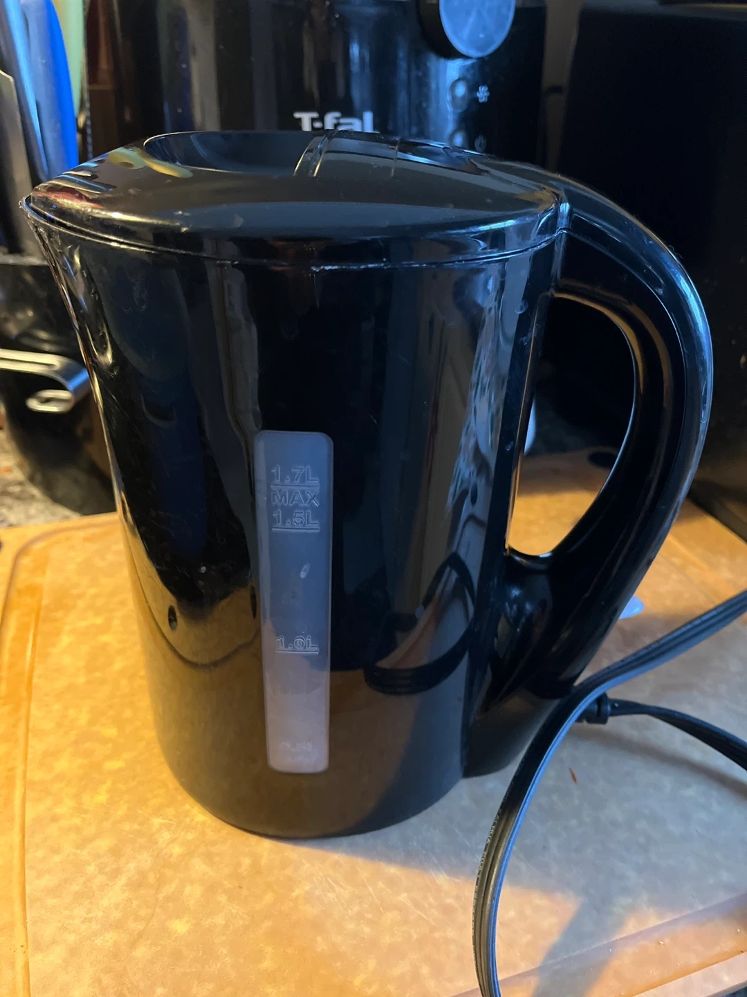 Buy & SellBlack Electric KettleBlack Electric Kettle$10This is a black electric kettle. It has a 1.7L maximum capacity. It's useful for quickly boiling water for tea or coffee. It’s in working condition.ConditionGoodWHERE TO MEETHillcrest mallView MapSELLERverifiedFarnLangstaff1000+1130 reviews0 chats·0 favorites·4 viewsSEND CHAT TO SELLERHi Farn! I’m interested in your listing.Hi Farn! I’m interested in your listing.Get the Karrot app to chatSign In to chat