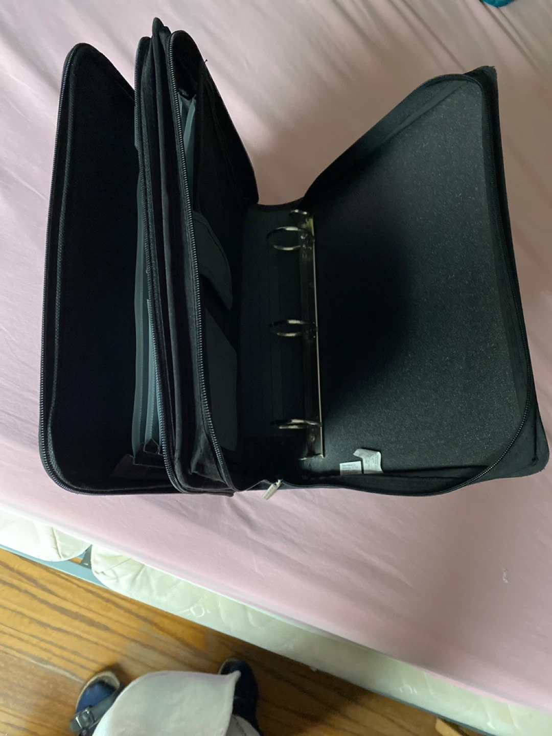 This FIVE STAR binder organizer is black with a sleek grey design. It features a zippered closure and multiple interior pockets for all your school or work supplies. It's a handy way to keep your documents and stationery together! Excellent condition.
