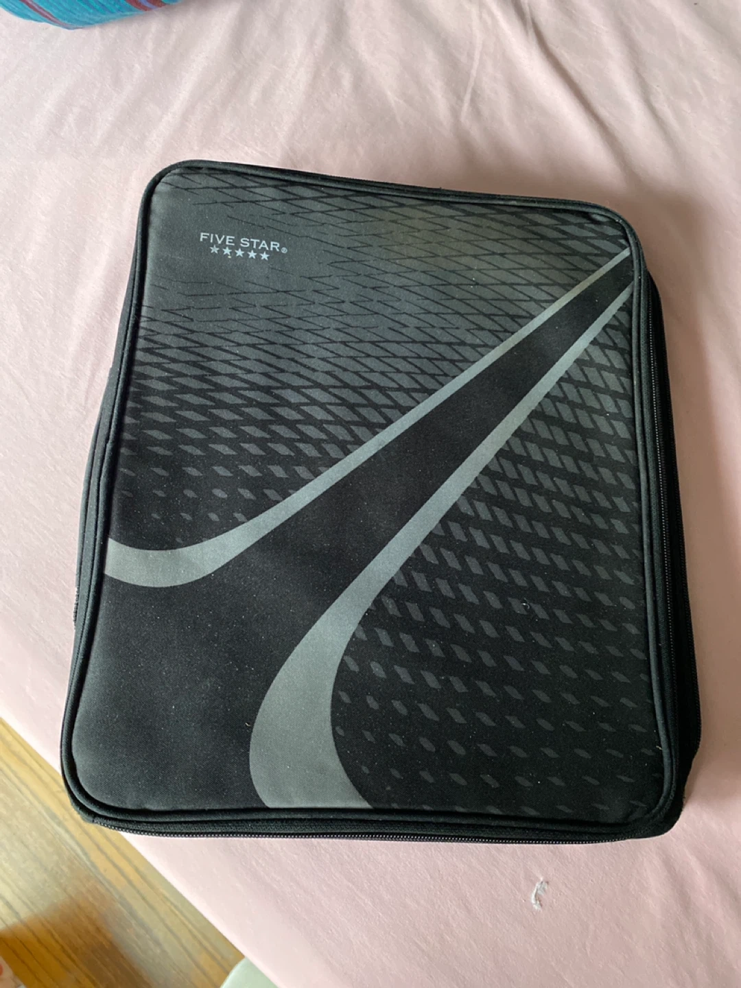 This FIVE STAR binder organizer is black with a sleek grey design. It features a zippered closure and multiple interior pockets for all your school or work supplies. It's a handy way to keep your documents and stationery together! Excellent condition.