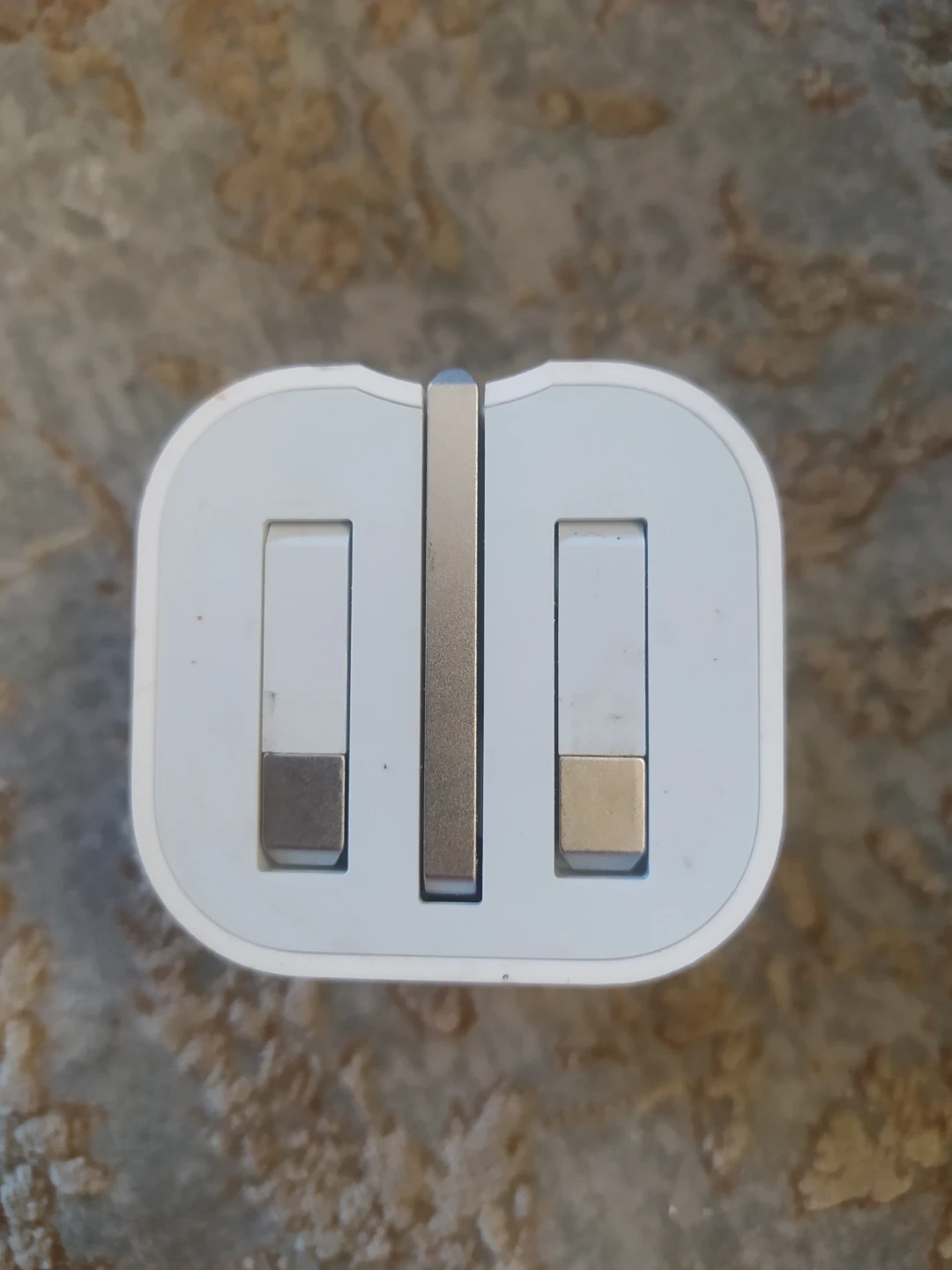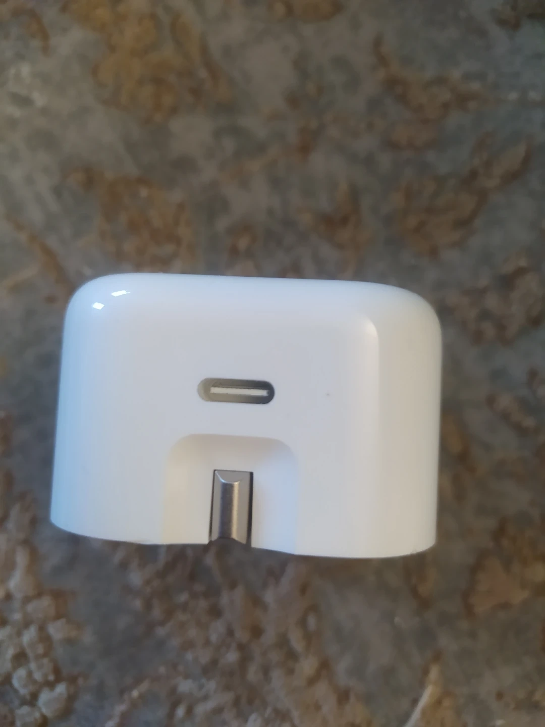 This is a white USB-C power adapter. It's a compact and portable charging solution. Works with various USB-C devices for quick power ups!