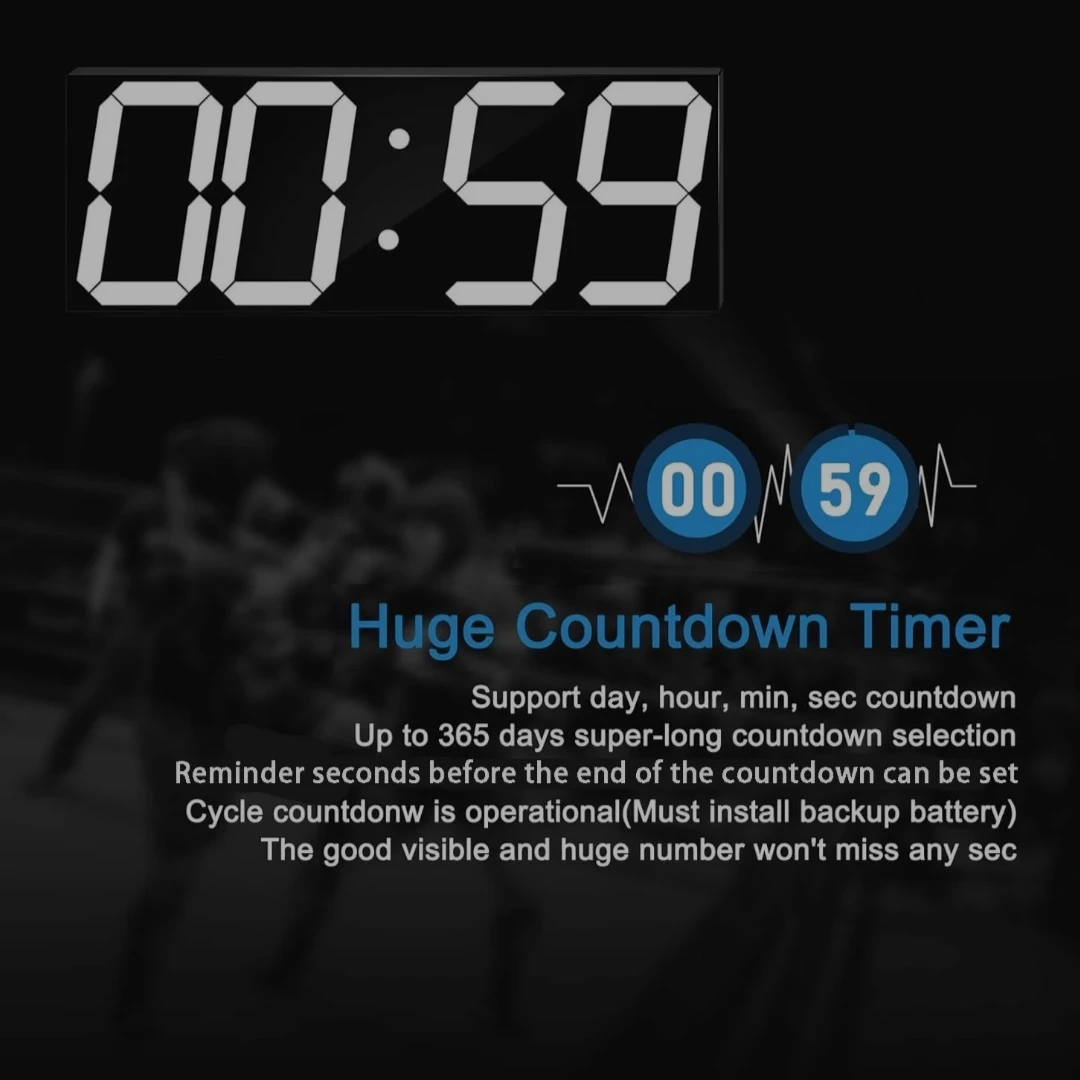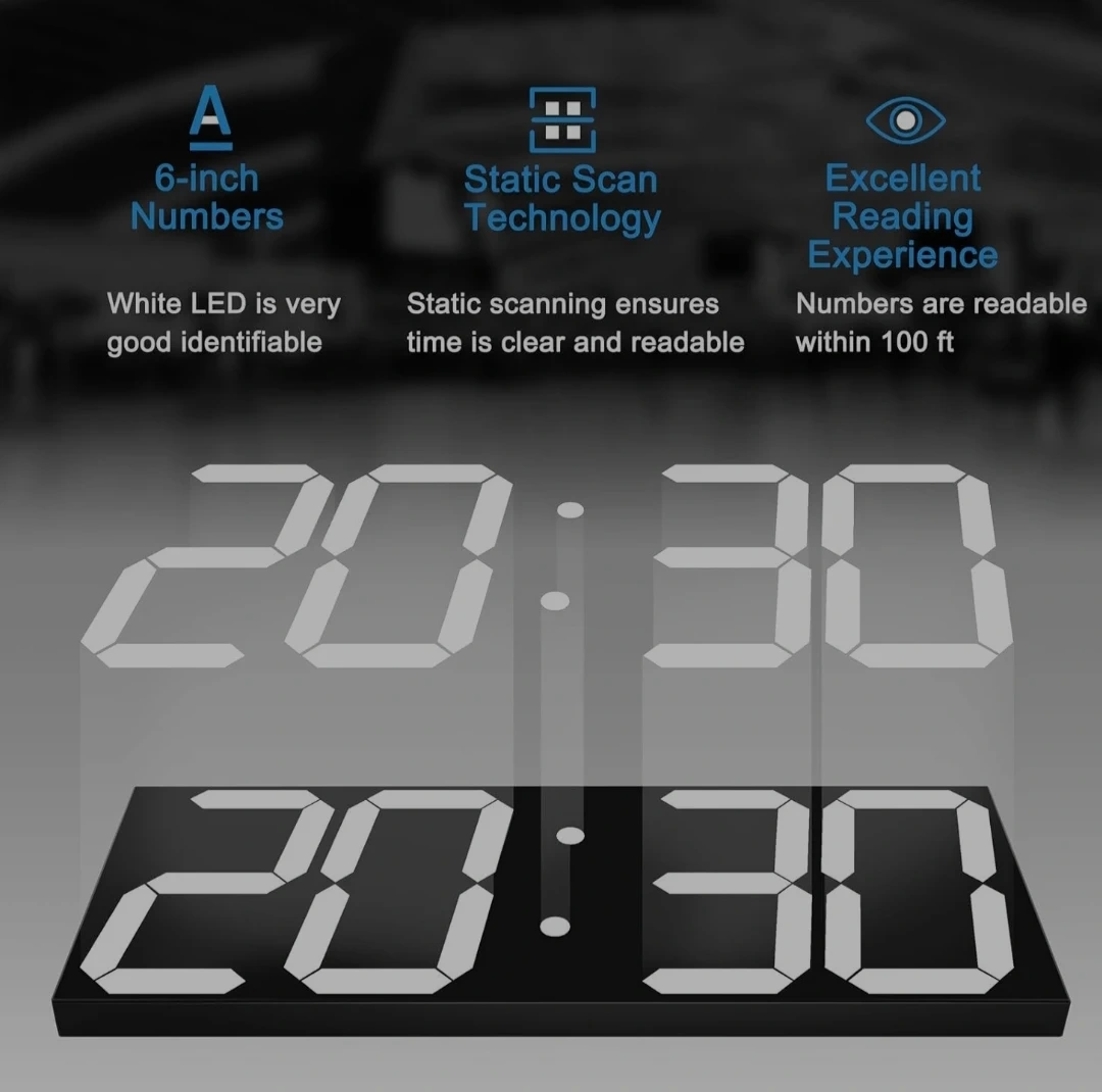 This digital clock features 6-inch numbers with 8 levels of adjustable brightness. It includes time display, calendar, remote control, alarm, auto dimmer, and temperature functions. It's perfect for any room in your home or office!