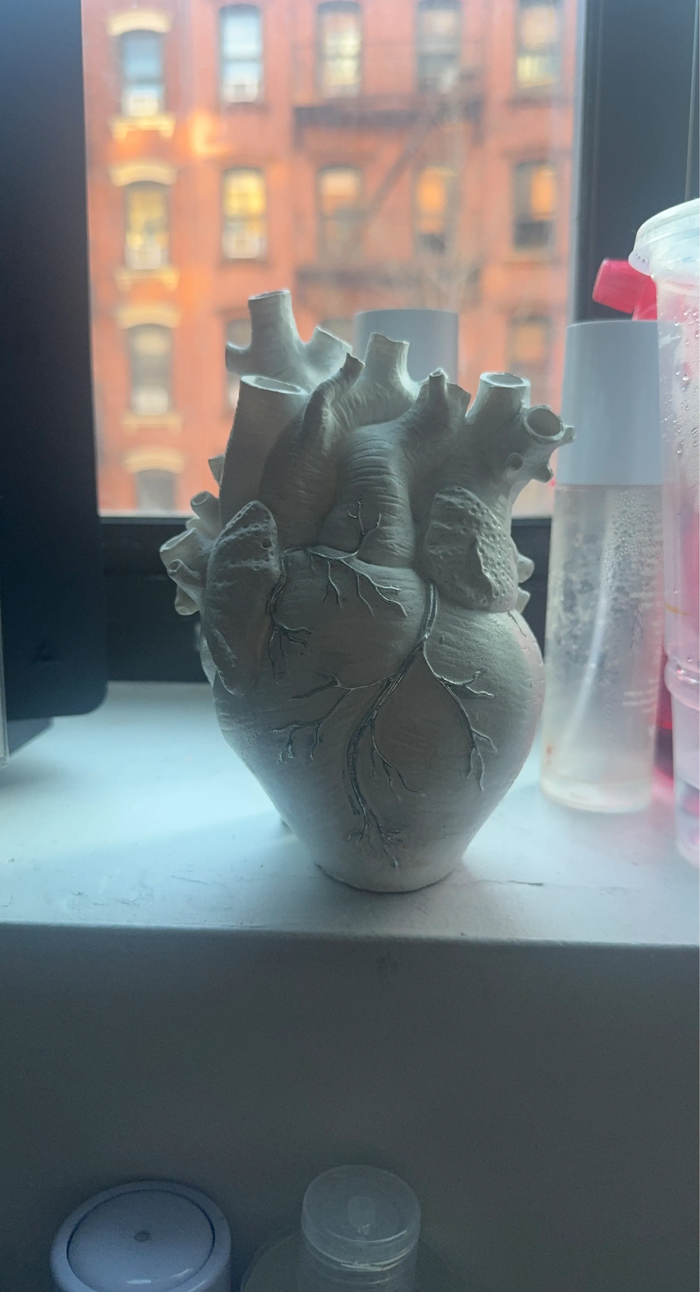 This unique vase is shaped like a realistic human heart. It's made of white ceramic with delicate vein details. It's perfect for holding small flowers or as a standalone decorative piece.