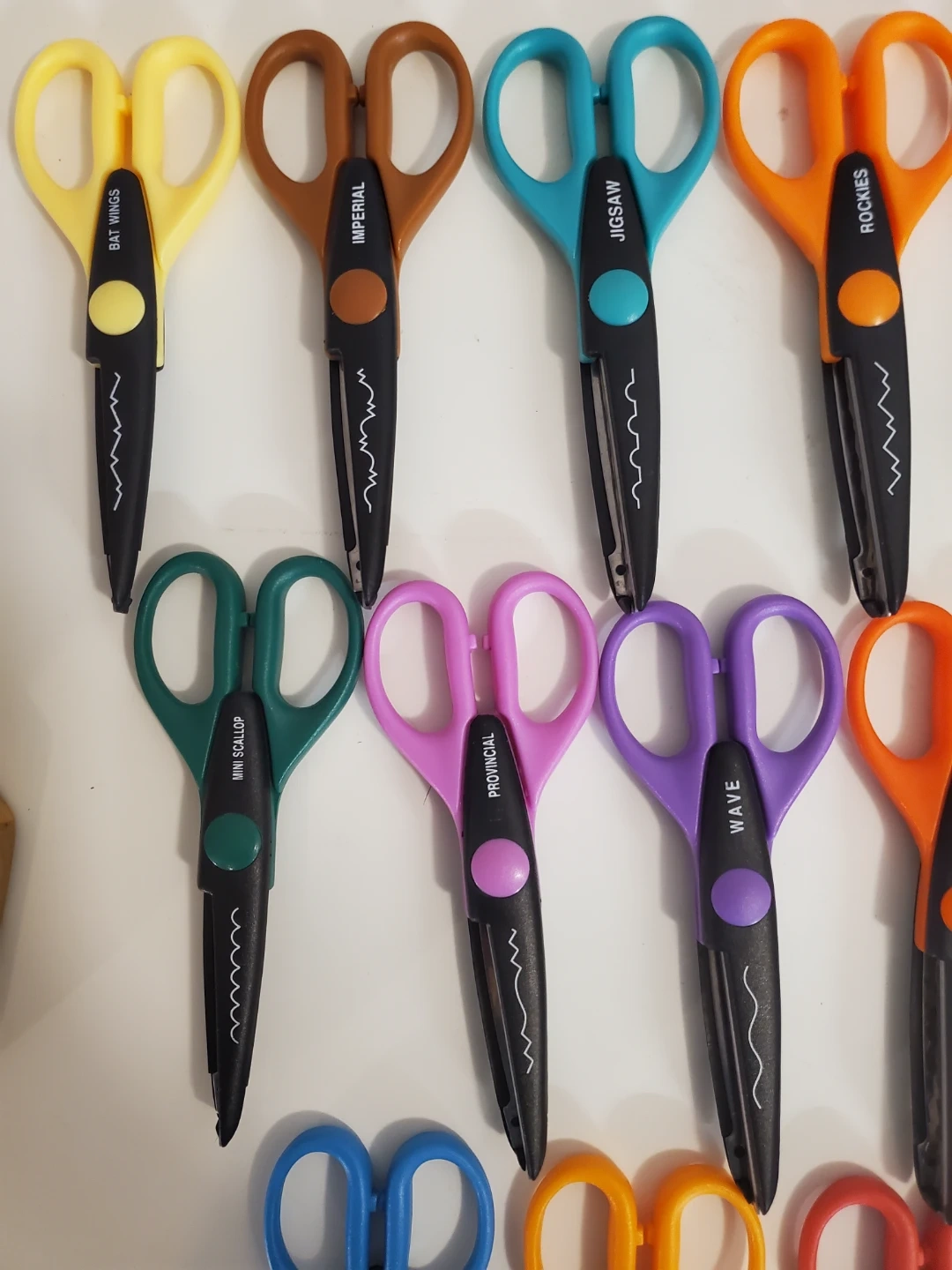 Each pair has a colorful handle and the pattern name or number is often printed on the side for easy identification.Â