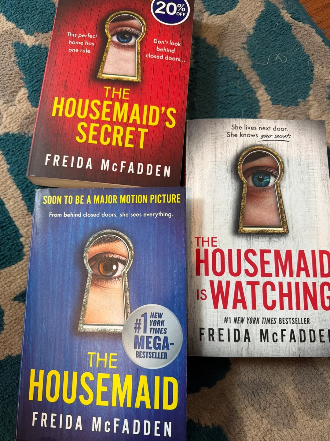 Three thrilling mystery novels by Freida McFadden: 'The Housemaid's Secret,' 'The Housemaid,' and 'The Housemaid is Watching.' These are #1 New York Times bestsellers perfect for fans of suspense.