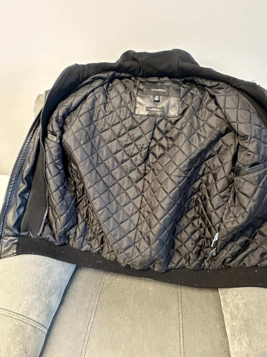 Le Chateau Men's Black Faux Leather Hooded Jacket - Size M