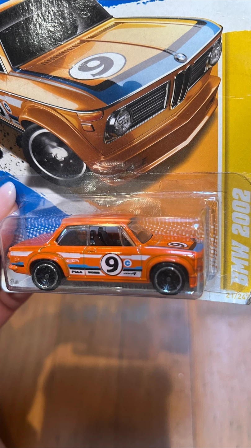 Orange BMW 2002 in factory sealed original packaging. Clean racing livery with black wheels and classic early-series BMW styling. A nice piece for Hot Wheels collectors, BMW fans, or anyone building a carded display collection.